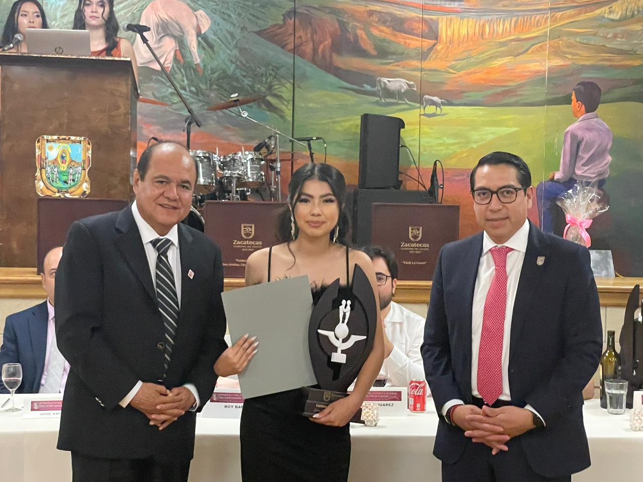 Acompañado por el titular de la Secretaría del Zacatecano Migrante (Sezami), Iván Reyes Millán; en nombre del Gobierno de Zacatecas, Barragán Ocampo entregó los reconocimientos “Mérito Migrante 2023”, como joven zacatecana del año a Yadira Padilla Méndez y al expresidente de la FCUZI, Ismael Mota, como zacatecano del año, por sus labores voluntarias al interior de la Federación, y su trayectoria profesional.
