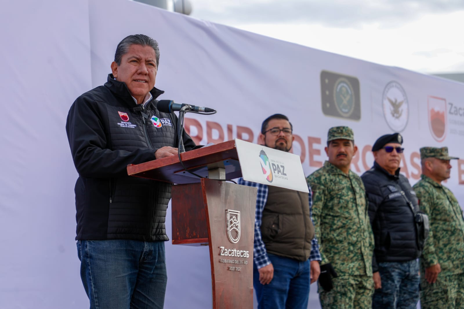 Fresnillo, Zac., 10 de febrero de 2024.- El Gobernador David Monreal Ávila dio la bienvenida a 800 elementos del Ejército Mexicano que arribaron este sábado a Zacatecas para fortalecer la estrategia de paz. En su mensaje a las tropas que operarán en el territorio estatal, les dijo que, a pesar de los obstáculos y lo complejo del camino, no se puede permitir dar un solo paso atrás en el proceso de pacificación.