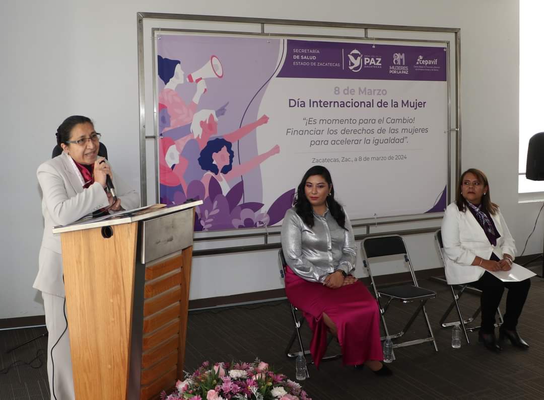 Zacatecas, Zac., 09 de marzo de 2024.- En el marco de la conmemoración del 8 de marzo, la Secretaría de Salud de Zacatecas (SSZ) organizó la conferencia denominada Retos y Desafíos de las Mujeres en el Año de la Paz, la cual fue dictada por Verónica Aguilar Vázquez, reconocida académica e investigadora en Derecho.