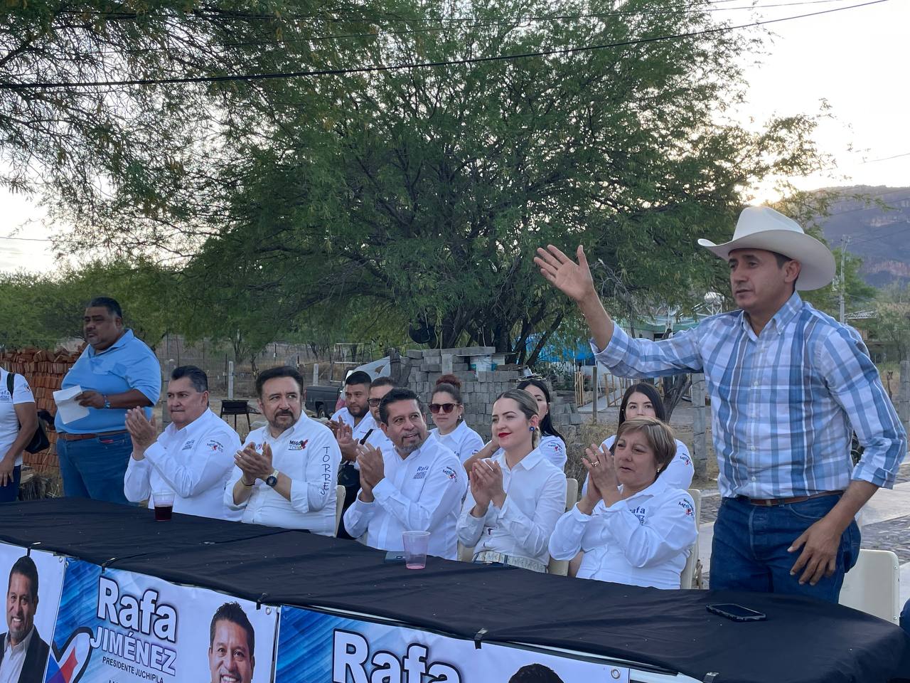 Juchipila, Zac.- Durante la gira de hoy, el candidato a Diputado Federal por el Distrito 2, Lupe Correa, de la coalición «Fuerza y Corazón por México» (integrada por PAN, PRI y PRD), llevó a cabo una intensa jornada de actividades comenzando en el barrio de San Sebastián, en Juchipila. Durante el mitin, Correa destacó el trabajo de Rafa Jiménez, aspirante a la presidencia municipal por Juchipila y su planilla, también resaltó el apoyo recibido por parte de la comunidad hacia Miguel Torres, candidato al Senado. La candidata a Diputada Local por el distrito 16, Karla Estrada, también estuvo presente en el evento.