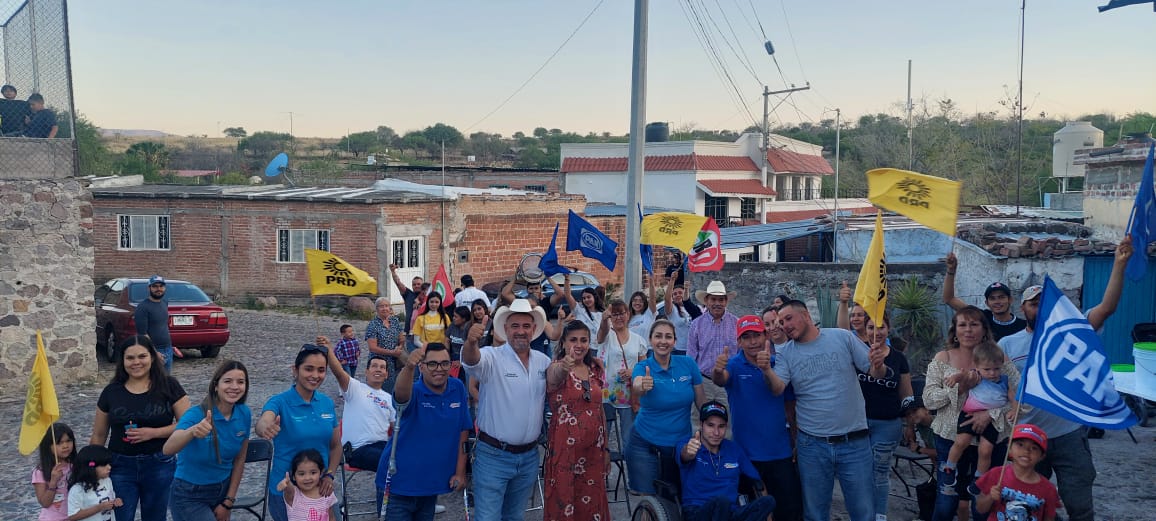 JALPA. – Olegario Viramontes, Candidato de la Coalición PAN, PRI Y PRD, continúa llevando su mensaje y proyecto de trabajo a los ciudadanos Jalpenses, así pues tocó el turno a La Villita de Abajo y El Rancho de Arriba, donde tuvo oportunidad de saludar a sus habitantes.