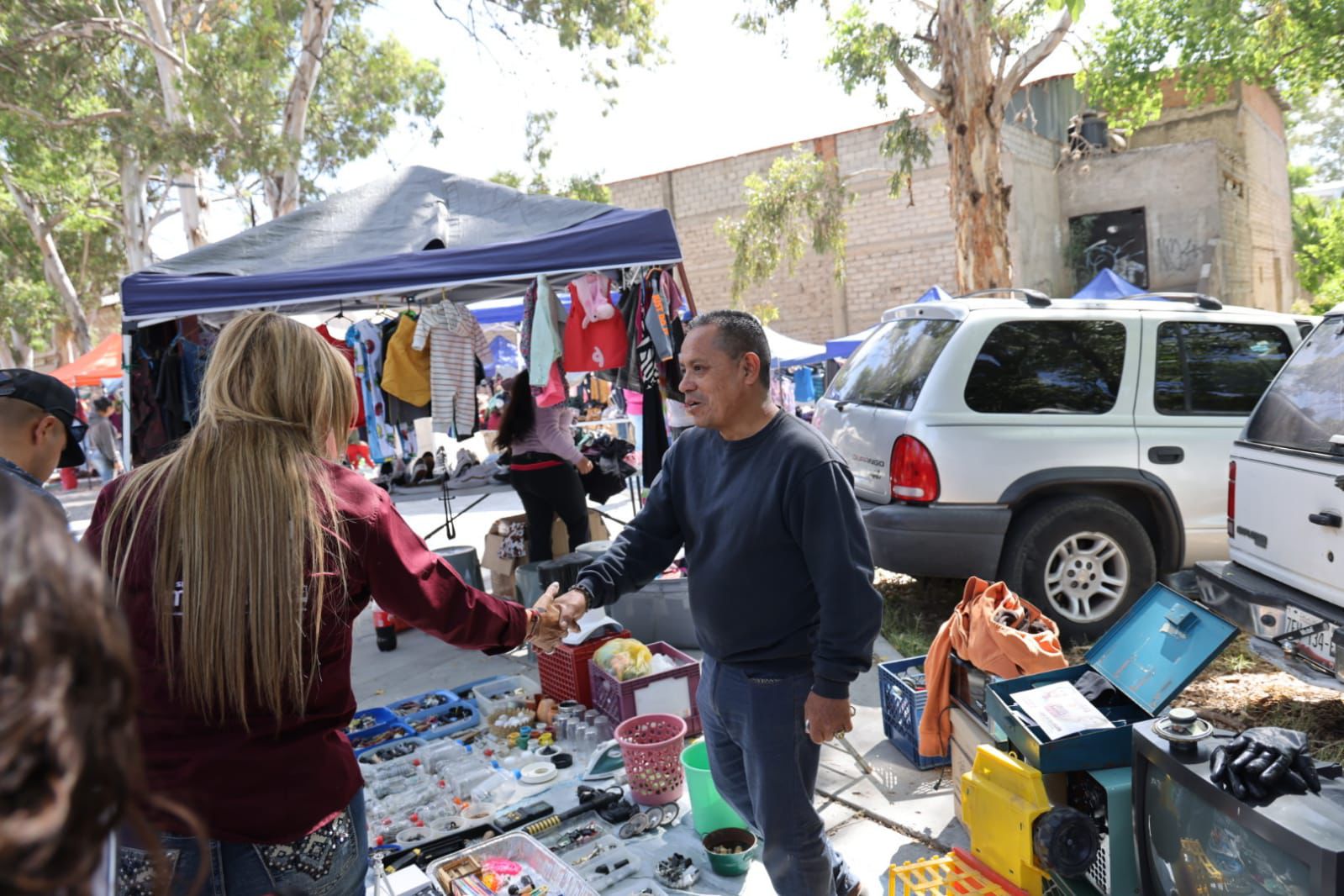 Acompañada por su equipo de trabajo y distintos coordinadores, Julia Olguín dialogó con los comerciantes que acuden al tianguis, quienes buscan mejorar su economía mediante el comercio en esta tradicional actividad.