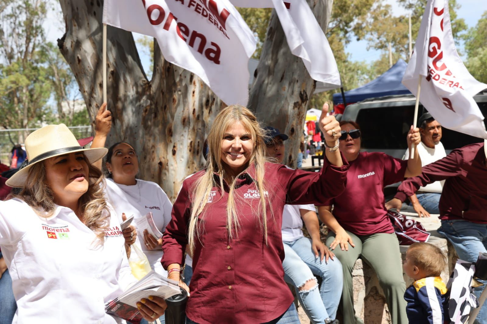 Jerez, Zacatecas – La mañana de este sábado, la aspirante a la cámara de Diputados Federal por la Coalición “Sigamos Haciendo Historia” integrada por Morena, el Partido Verde y el PT, Julia Olguín, realizó un recorrido por el tianguis “El Sabadazo”, uno de los más importantes del municipio.