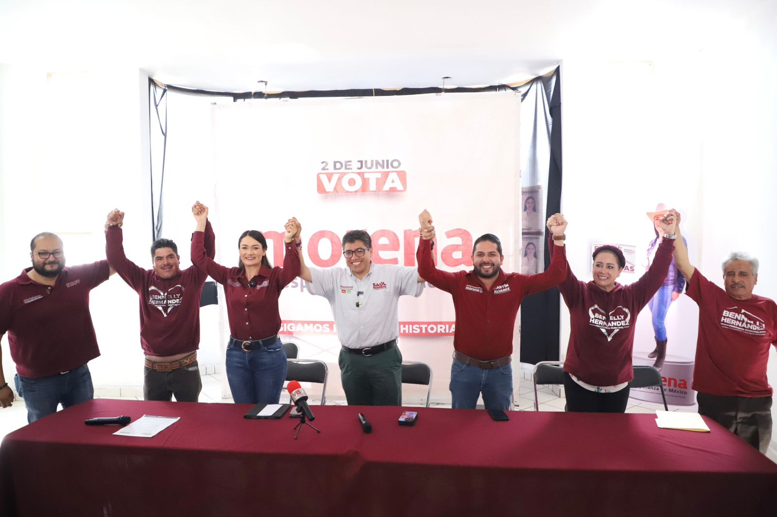 En suma, durante la tradicional conferencia itinerante de mitad de semana que hace Saúl Monreal Ávila por municipios del estado, acompañó en sus actividades a la candidata a la presidencia Municipal de Fresnillo de “Sigamos Haciendo Historia”, Bennelly Hernández Ruedas, quien se sumó a los compromisos que hizo el candidato al Senado de la República.