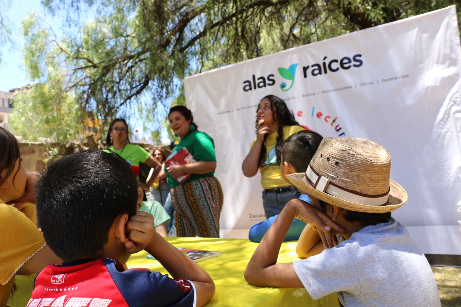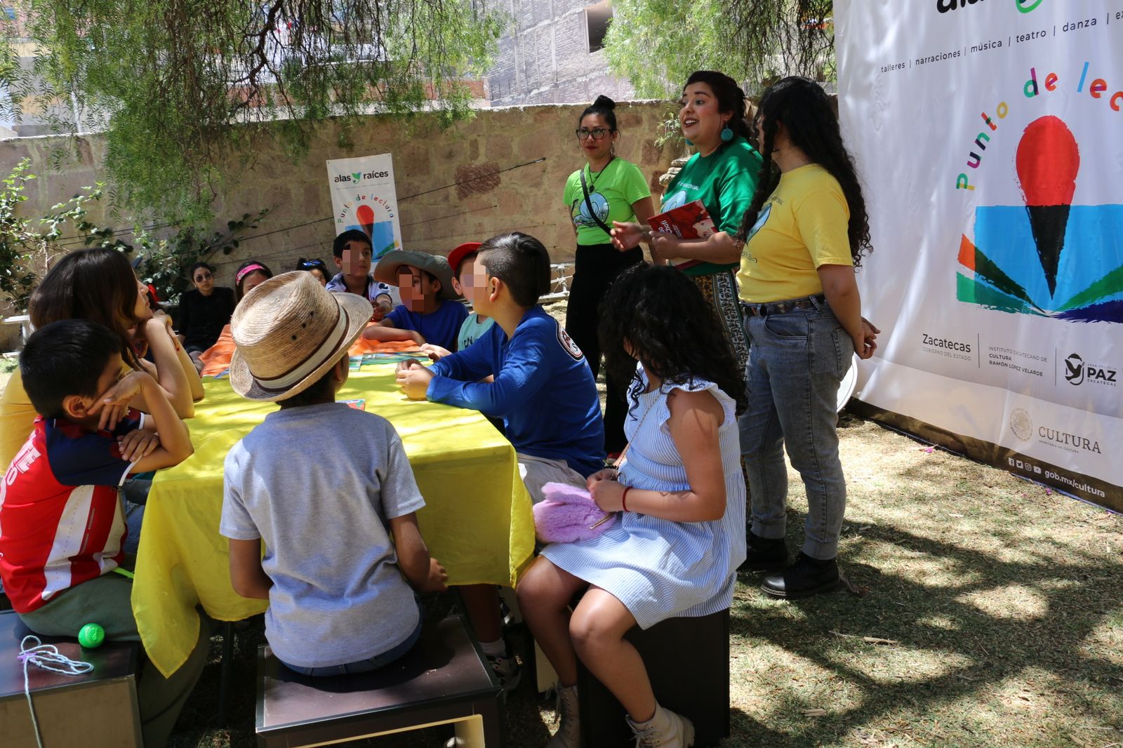 Zacatecas, Zac., 18 de mayo de 2024.- Con lecturas en voz alta, como el cuento de “El peinado de la tía Chofi”, la elaboración de una lotería con personajes de la comunidad y juegos tradicionales, la colectiva “Flores del Desierto” promovió el gusto por la lectura en niñas y niños, con la actividad “Personajes de mi comunidad”, en los jardines del Museo Rafael Coronel.