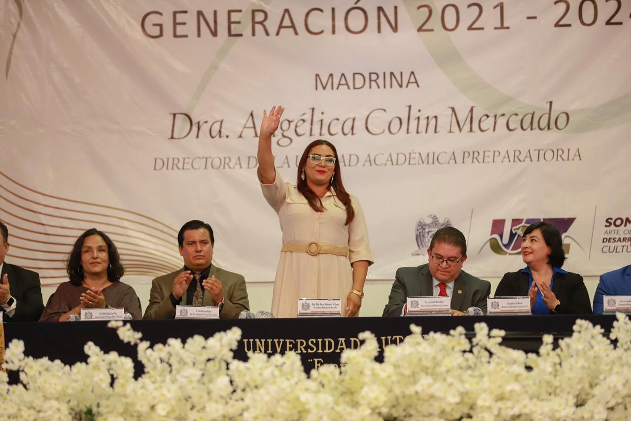 Fresnillo, Zac.- Rita Rocío Quiñones de Luna, presidenta municipal, acompañó a los egresados de la Preparatoria III de la Universidad Autónoma de Zacatecas (UAZ) en la ceremonia de su graduación, motivándolos a que sigan sus sueños y trabajen para lograr sus objetivos pues son pilar en la sociedad fresnillense.