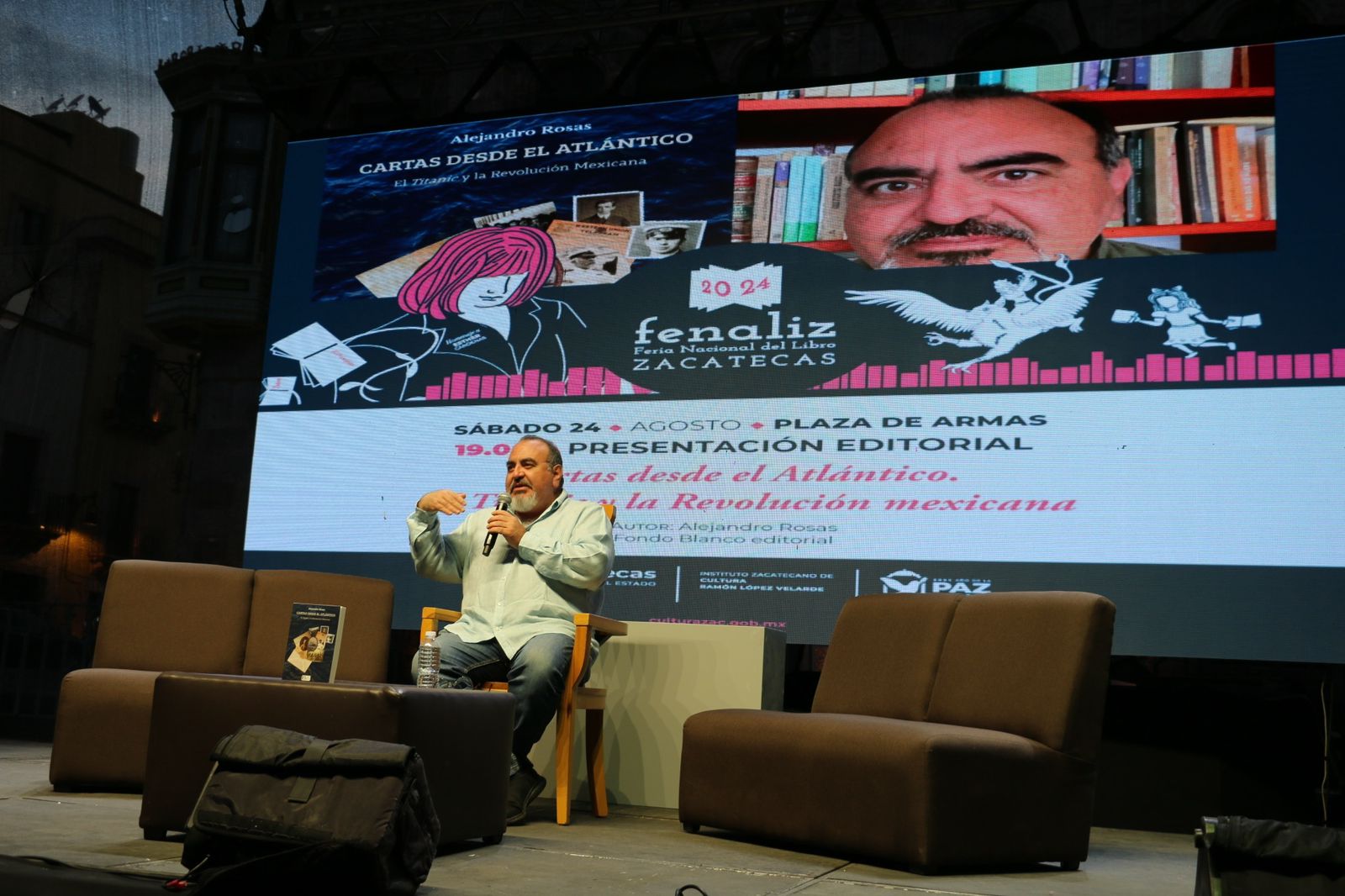 La presentación de “Cartas desde el Atlántico. El Titanic y la Revolución Mexicana”, de Alejandro Rosas, inició con algunos fragmentos del corrido de La Toma de Zacatecas, hasta contextualizar, desde su genealogía y la de otros, así como material epistolar y del ejercicio periodístico, la relación entre ambos acontecimientos históricos y de la ficción que dan título a su obra, editada por Fondo Blanco.