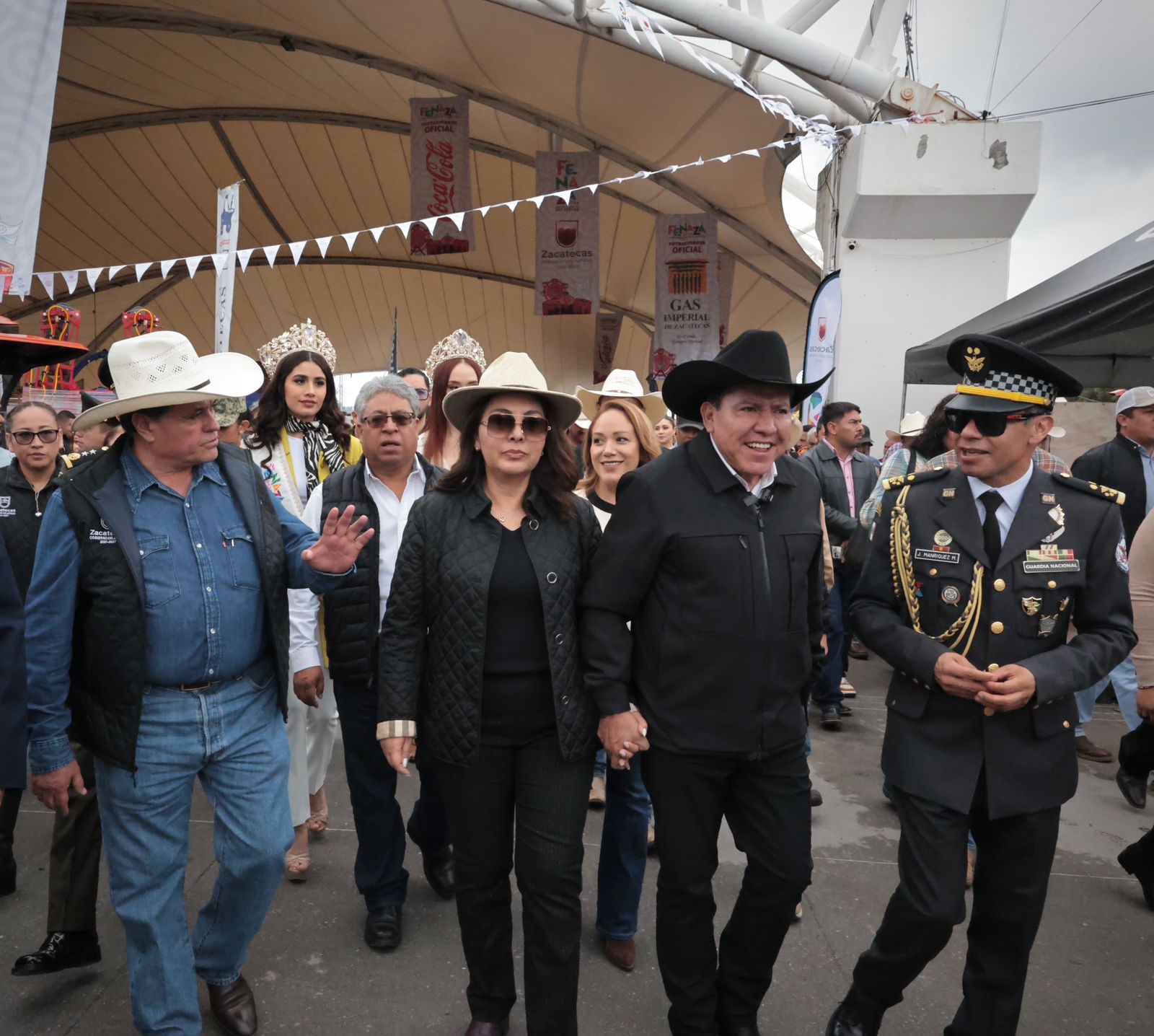 El Gobernador David Monreal realizó un recorrido en el lugar acompañado por la Reina Kassandra I y las Princesas Alexa y Samantha; por autoridades religiosas, de la Guardia Nacional y Ejército Mexicano, así como por las y los secretarios de Seguridad Pública, Arturo Medina Mayoral; de Turismo, Le Roy Barragán Ocampo; de Economía, Rodrigo Castañeda Miranda; de las Mujeres, Karla Isabel Guardado Oropeza; y de Educación, María del Carmen Salinas Flores, entre otros.
