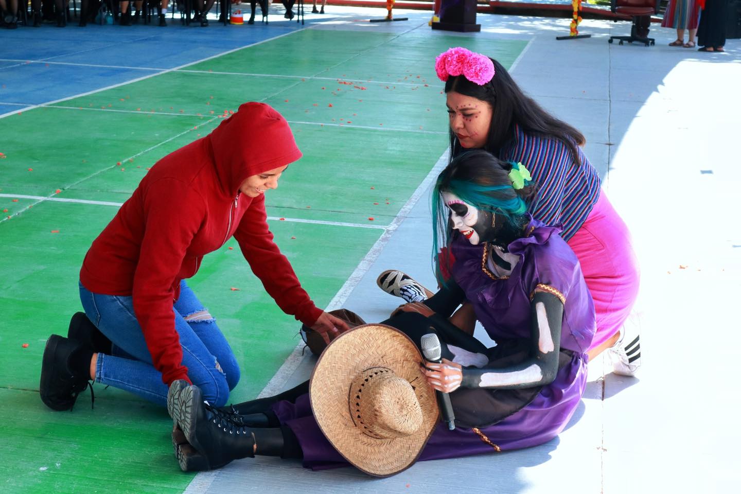 Durante el festival, los alumnos mostraron su talento y entusiasmo a través de diversas presentaciones artísticas, destacándose por su originalidad y compromiso. El Mtro. Castro Félix, fiel a su vocación de docente y promotor de las tradiciones, tuvo el honor de premiar a los equipos ganadores que sorprendieron con sus caracterizaciones y montajes. Los grupos destacados incluyeron a The Purge, Ghostbusters y Toy Story, quienes se ganaron el aplauso del público y la admiración del jurado.