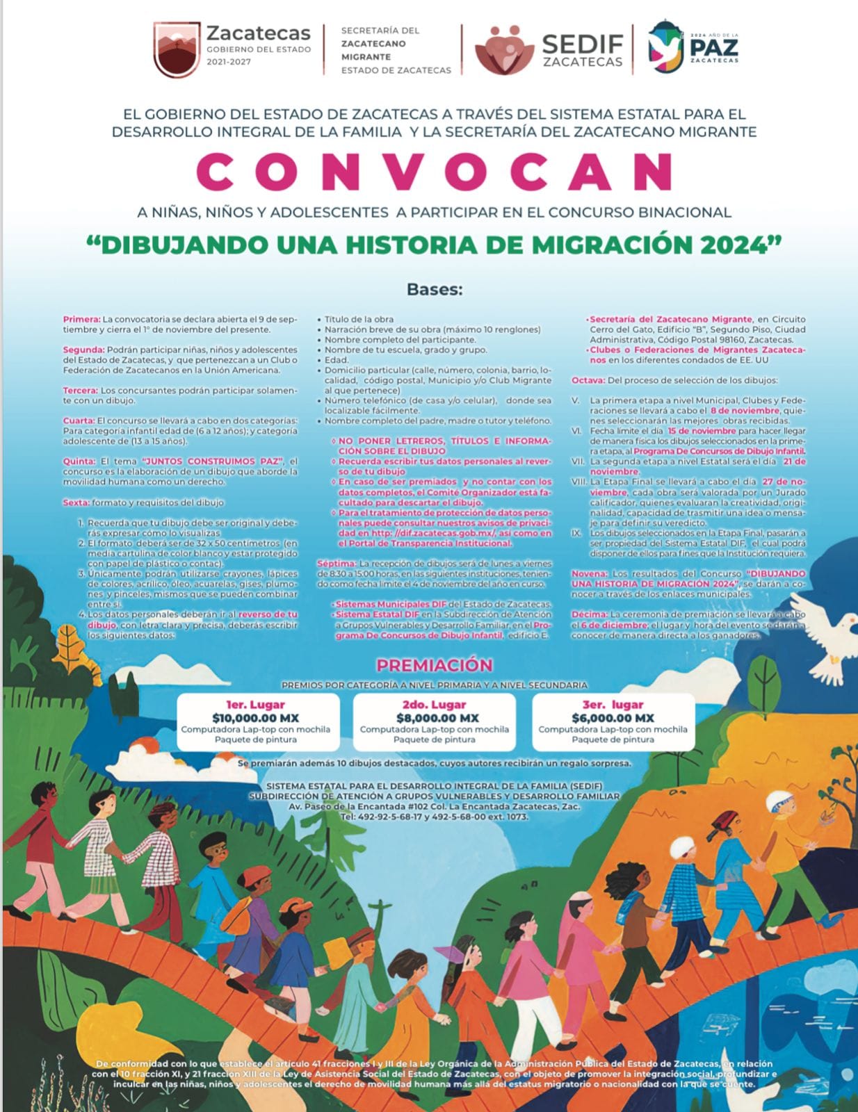 Apozol, Zacatecas. – El H. Ayuntamiento 2024-2027, presidido por la alcaldesa Gabriela Arellano, en coordinación con SIPINA, el SMDIF y el Gobierno del Estado de Zacatecas, encabezado por el Lic. David Monreal Ávila, a través del SEDIF y la Secretaría del Zacatecano Migrante, lanzó la convocatoria para niñas, niños y adolescentes interesados en participar en el concurso binacional «Dibujando una Historia de Migración 2024».