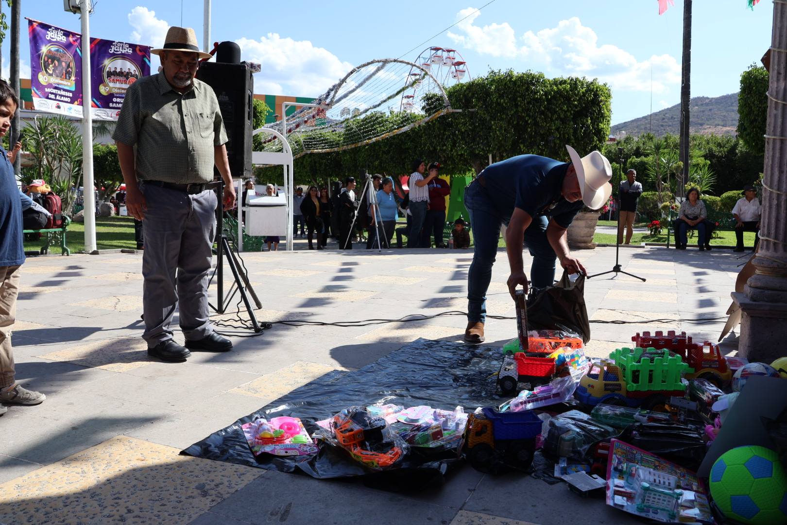 Más tarde, el presidente municipal acudió al 14º Juguetón, una actividad solidaria que tiene como objetivo llevar juguetes a niños de escasos recursos. En este evento, realizado en el kiosco de la Plaza Aréchiga con música en vivo, Olegario Viramontes realizó una significativa donación de juguetes, destacando la importancia de compartir y fortalecer los lazos comunitarios en estas fechas festivas.