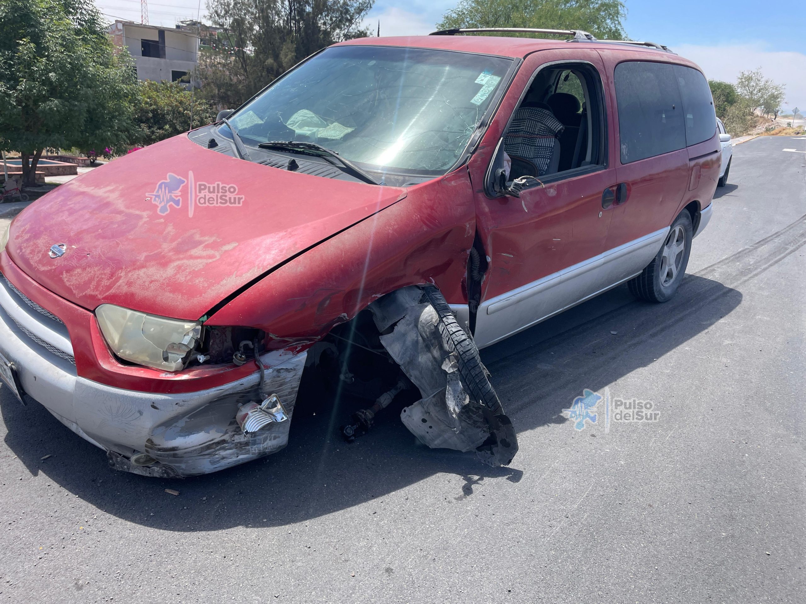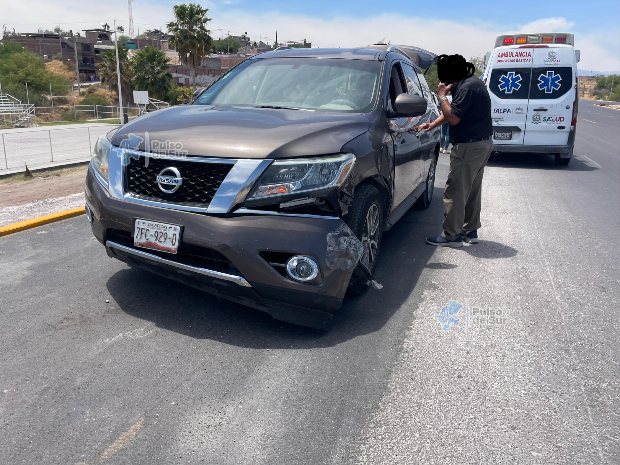 Un fuerte accidente se registró este domingo en el libramiento de Jalpa, a la altura del entronque a la colonia Santa Cecilia. En el choque se vieron involucrados una motocicleta Italika, una camioneta Nissan Quest y una Nissan Pathfinder.
