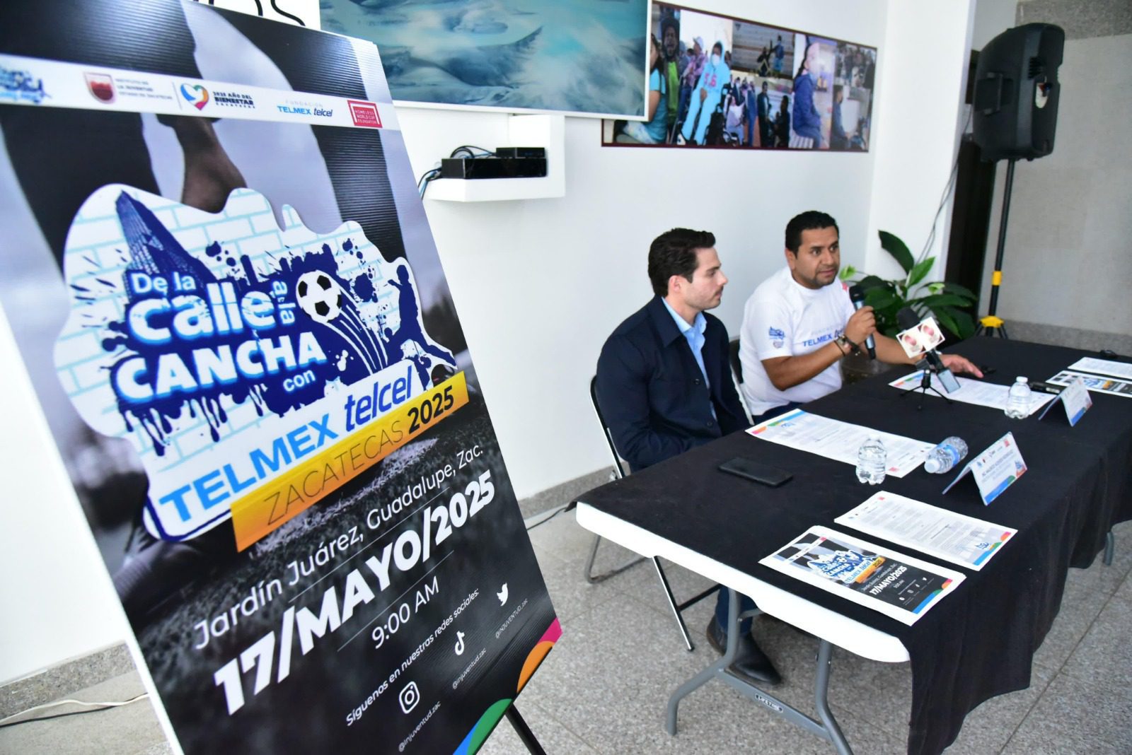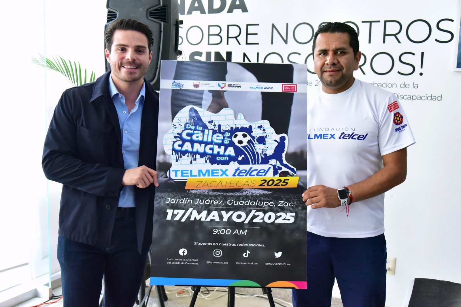 Zacatecas, Zac, 22 de abril de 2025.- En un esfuerzo por fortalecer la atención al sector joven de la población en todos los ámbitos, el Gobierno de Zacatecas, por medio del Instituto de la Juventud (Injuventud), presentó la convocatoria para el torneo de fútbol “Street Soccer” (De la Calle a la Cancha), programa de Fundación Telmex-Telcel que brinda a jóvenes, en situaciones vulnerables, una oportunidad real de trascender por medio del deporte.