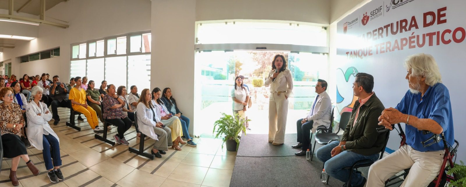 El acto fue encabezado por la Presidenta Honorífica del Sistema Estatal para el Desarrollo Integral de la Familia (SEDIF), Sara Hernández de Monreal, quien destacó que este importante espacio brindará atención a más de mil familias mensualmente mediante sesiones de hidroterapia.