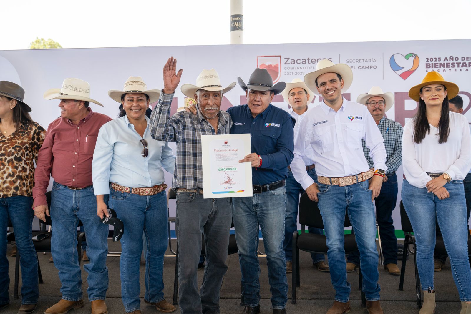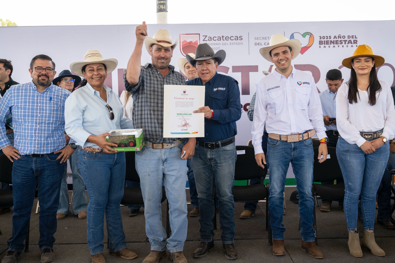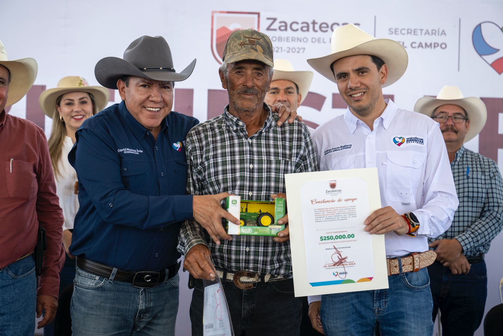 En presencia de Gerardo Luis Cervantes Viramontes, titular de la Secretaría del Campo (Secampo), y de Rodrigo Reyes Mugüerza, secretario general de Gobierno, el Gobernador David Monreal Ávila anunció que, en este Año del Bienestar 2025, otorgará subsidios de 250 mil pesos para la adquisición de 600 tractores nuevos, además de dar instrucciones para que, en lo inmediato, se dispersen los recursos para el diésel agropecuario.