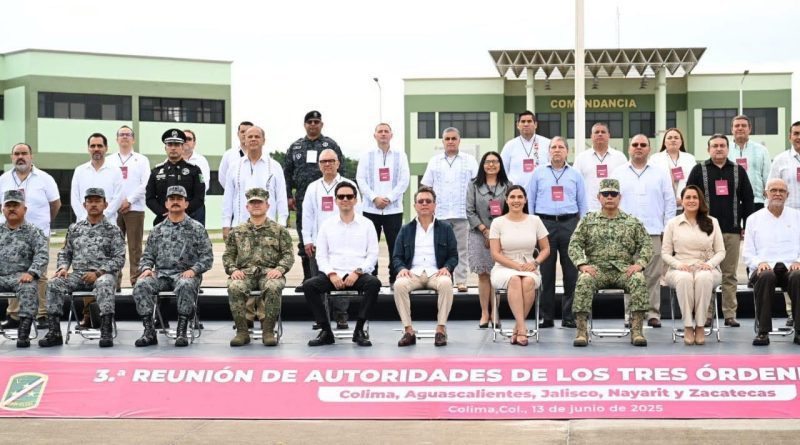 El encuentro, realizado este día, en las instalaciones de la Vigésima Zona Militar, estuvo encabezado por la anfitriona Índira Vizcaíno Silva, gobernadora de Colima, el Secretario General de Gobierno de Zacatecas, Rodrigo Reyes Mugüerza, en representación del mandatario estatal David Monreal Ávila; Tere Jiménez, gobernadora de Aguascalientes; Jesús Pablo Lemus Navarro, mandatario estatal de Jalisco y el titular del Ejecutivo de Nayarit, Miguel Ángel Navarro Quintero.
