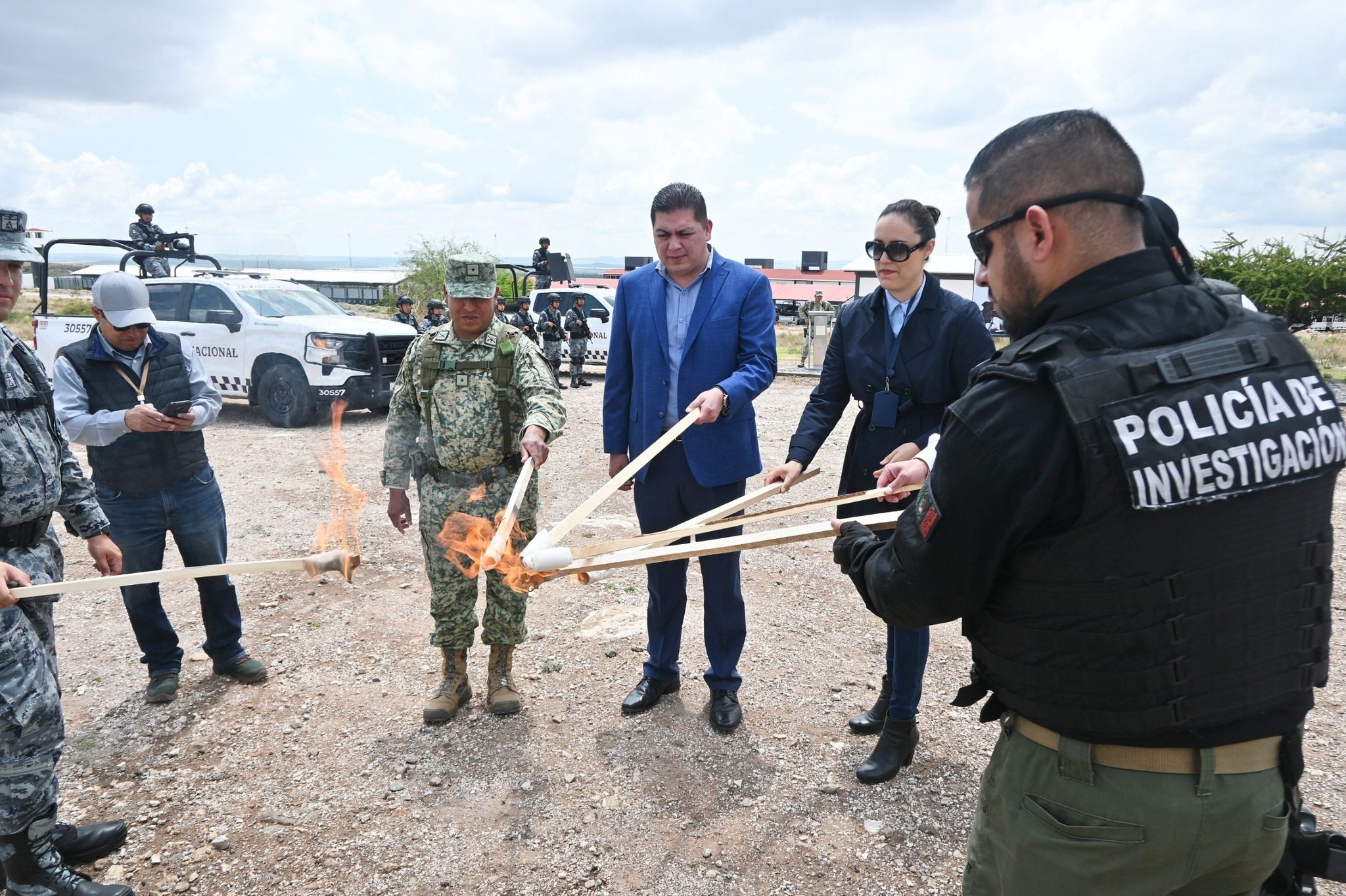 La jornada fue encabezada por el Vicefiscal Distrital de Fresnillo, Mtro. Rey Yair Ponce Navarra, y contó con la presencia del titular del Órgano Interno de Control, Mtro. José Refugio Medina Núñez, así como de la Mtra. Diana Gabriela Casas Pérez, Coordinadora del Evento de Incineración y Destrucción de Bienes Asegurados. También participó el Tte. Cor. Inf. Juan Moreno Mendoza, Comandante Interno del 97/o. Batallón de Infantería, y representantes del 5/o. Batallón de la Guardia Nacional.