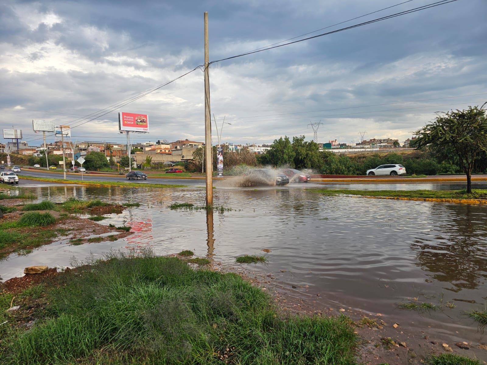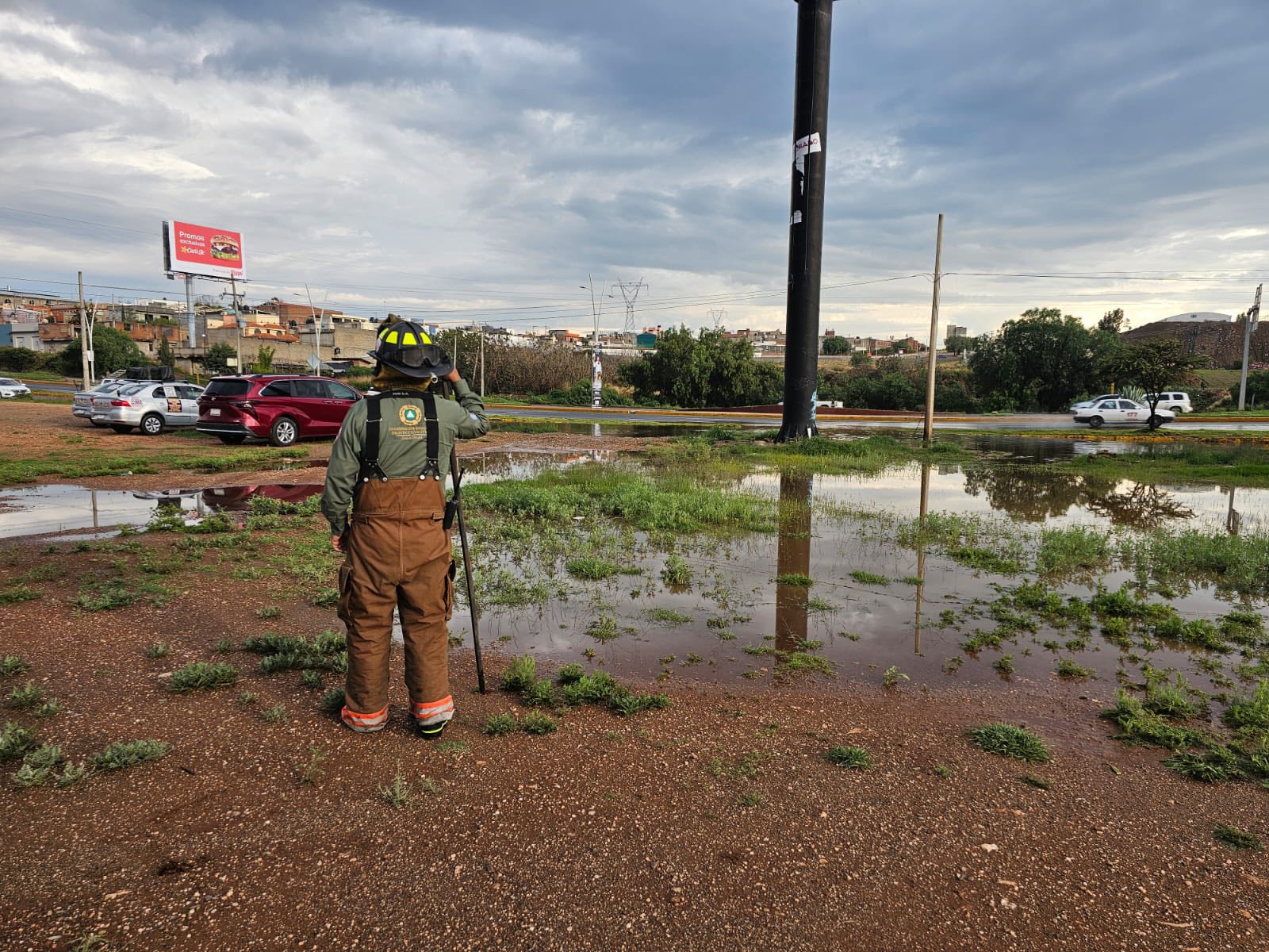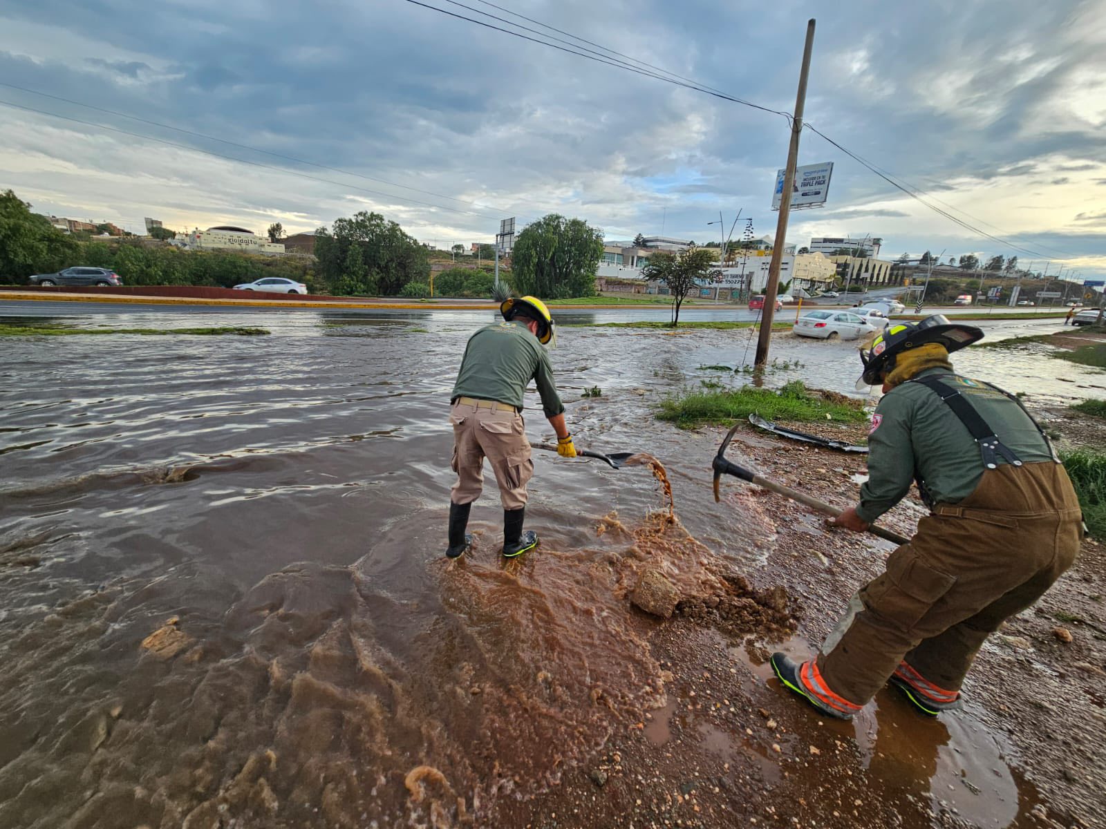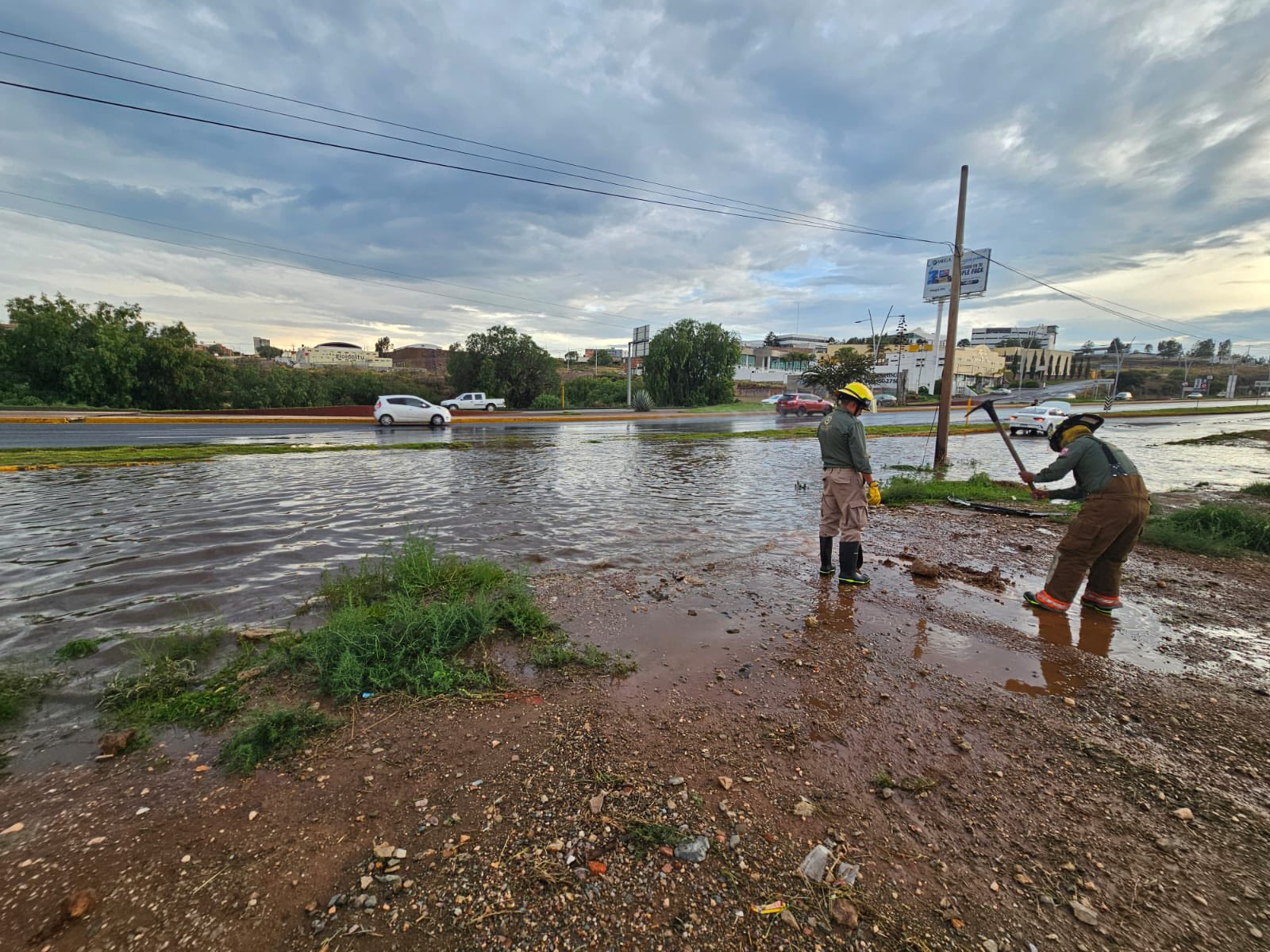 Zacatecas, Zacatecas. – La Coordinación Estatal de Protección Civil desplegó este lunes a su personal para atender un importante encharcamiento que se registró en el lateral del Bulevar Adolfo López Mateos, una de las principales vialidades de la ciudad capital.