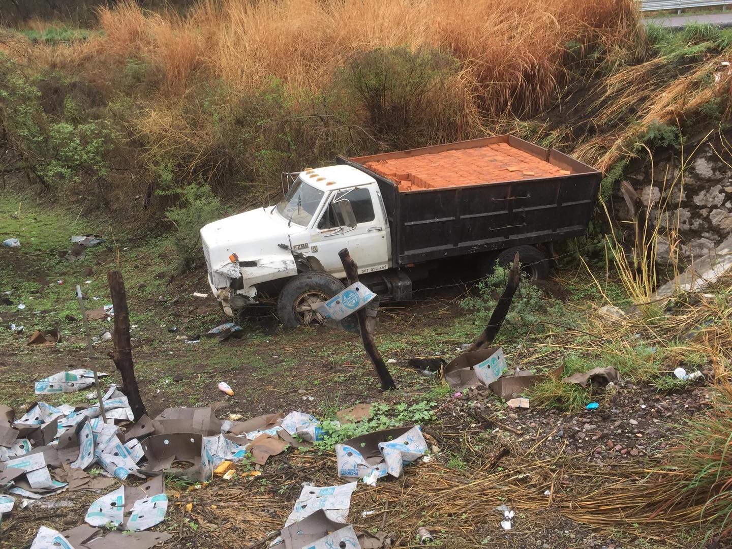 Moyahua, Zac. – Elementos de Protección Civil del municipio de Moyahua atendieron el reporte de un accidente registrado sobre la carretera federal Guadalajara–Saltillo, donde un camión de carga que transportaba ladrillo salió del camino.