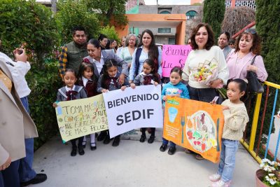 Villa Hidalgo, Zac.- Como parte del compromiso del Gobierno de Zacatecas con el bienestar de la niñez, la Presidenta Honorífica del Sistema Estatal para el Desarrollo Integral de la Familia (SEDIF), Sara Hernández de Monreal, realizó una gira de trabajo por los municipios de Villa Hidalgo y Noria de Ángeles, donde inauguró dos comedores escolares que beneficiarán a niñas y niños de nivel preescolar.