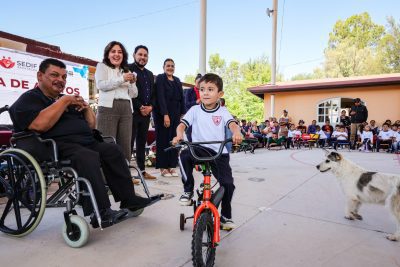Durante ambos eventos, Sara Hernández de Monreal convivió con la comunidad escolar y entregó juguetes, bicicletas y balones deportivos a las y los estudiantes, como parte de las acciones para fomentar la sana convivencia, la recreación y el bienestar emocional de la niñez zacatecana.