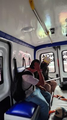 Al arribar al sitio, los paramédicos localizaron a un masculino consciente y orientado, quien refirió haber sido empujado por un vehículo. Durante la valoración no se detectaron lesiones de gravedad, aunque se le recomendó acudir a consulta médica para descartar posibles afectaciones internas.