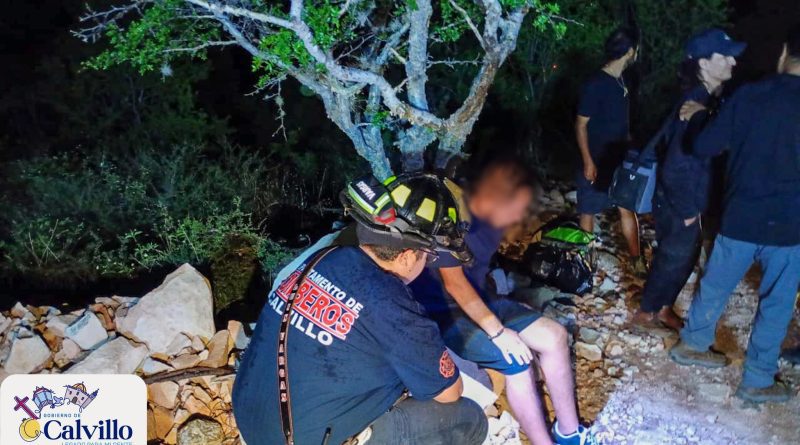 Calvillo, Ags.- Personal de la Coordinación de Protección Civil, Bomberos y Atención Prehospitalaria de Calvillo brindó primeros auxilios a un joven que sufrió una caída tras resbalar mientras visitaba la Cascada de Los Huenchos.
