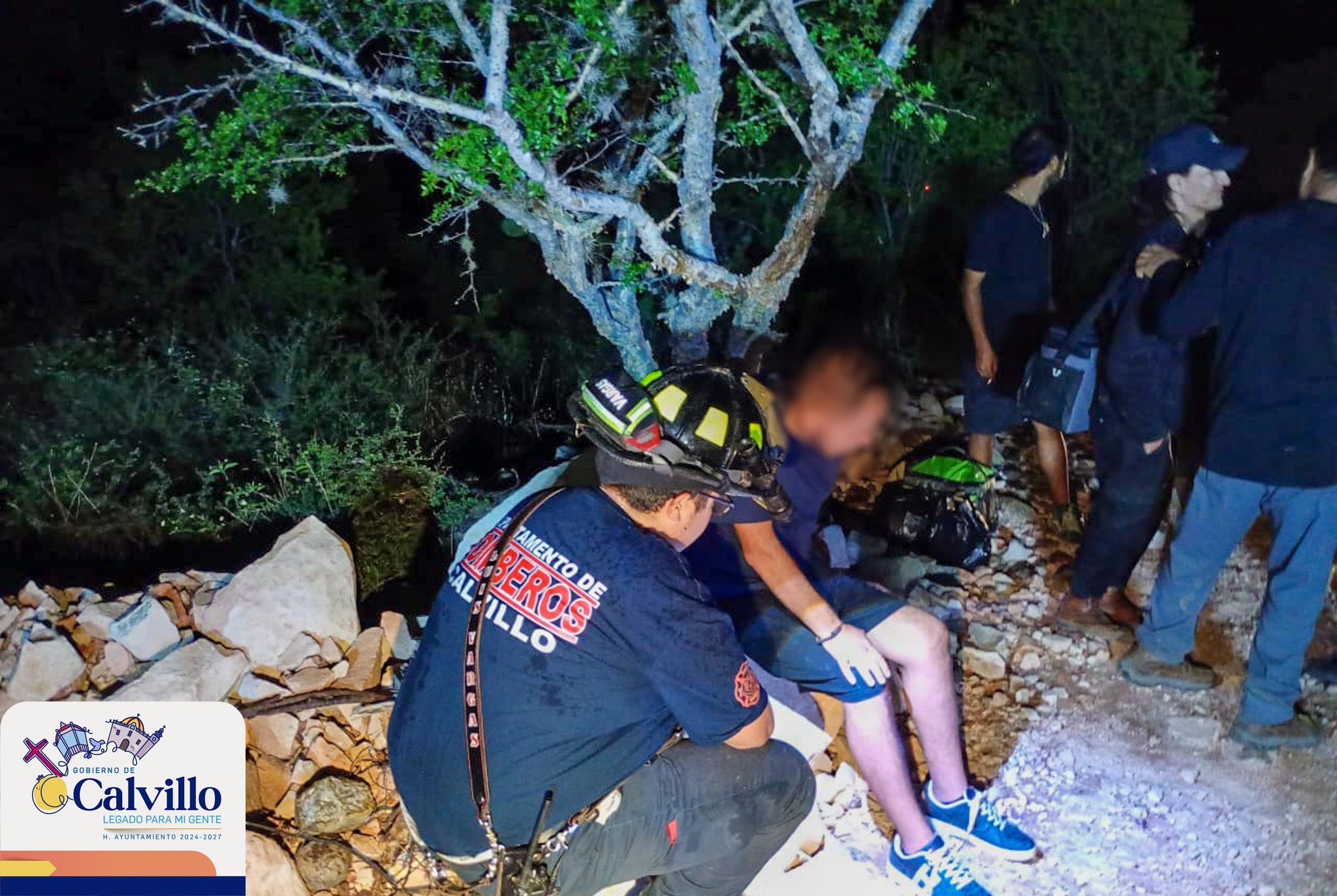 Calvillo, Ags.- Personal de la Coordinación de Protección Civil, Bomberos y Atención Prehospitalaria de Calvillo brindó primeros auxilios a un joven que sufrió una caída tras resbalar mientras visitaba la Cascada de Los Huenchos.