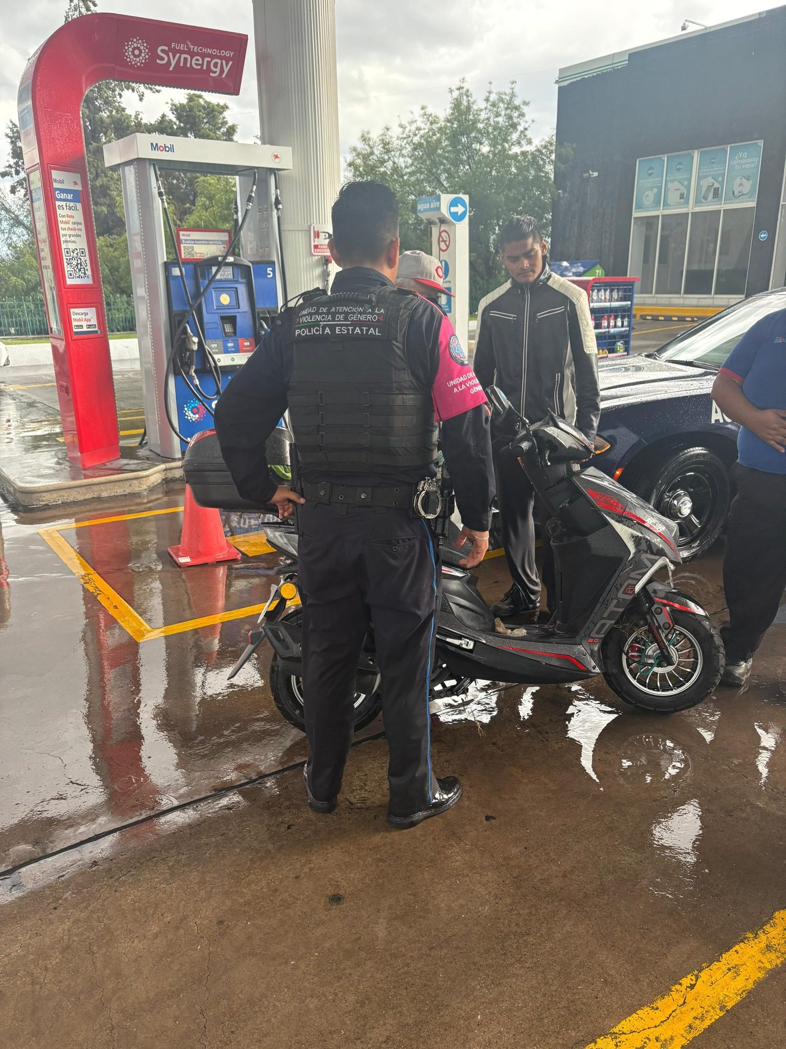 Aguascalientes, Ags.- Elementos de la Policía Estatal brindaron apoyo a tres personas que se encontraban varadas bajo la lluvia en distintos puntos de la ciudad, como parte de sus recorridos de vigilancia y atención a la ciudadanía.