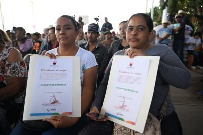 Hizo la entrega de paquetes de pie de cría de ovinos (hasta cuatro vientres y un semental) y porcinos (hasta tres vientres y un semental), así como apoyos en especie para la instalación de huertos hortofrutícolas y de nopal, dirigidos al autoconsumo y a la mejora en la calidad de vida de las familias rurales.