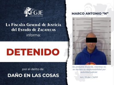 Marco Antonio “N”, en Fresnillo, por daño en las cosas.