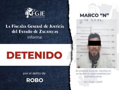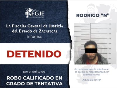Rodrigo “N”, en Calera, por robo calificado en grado de tentativa.