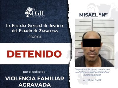Misael “N”, en Zacatecas, por violencia familiar agravada.