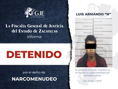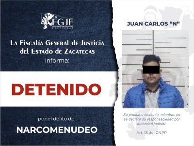 Juan Carlos “N”, en Zacatecas, por narcomenudeo.