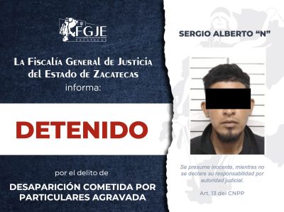 Sergio Alberto “N”, en Zacatecas, por desaparición cometida por particulares agravada.