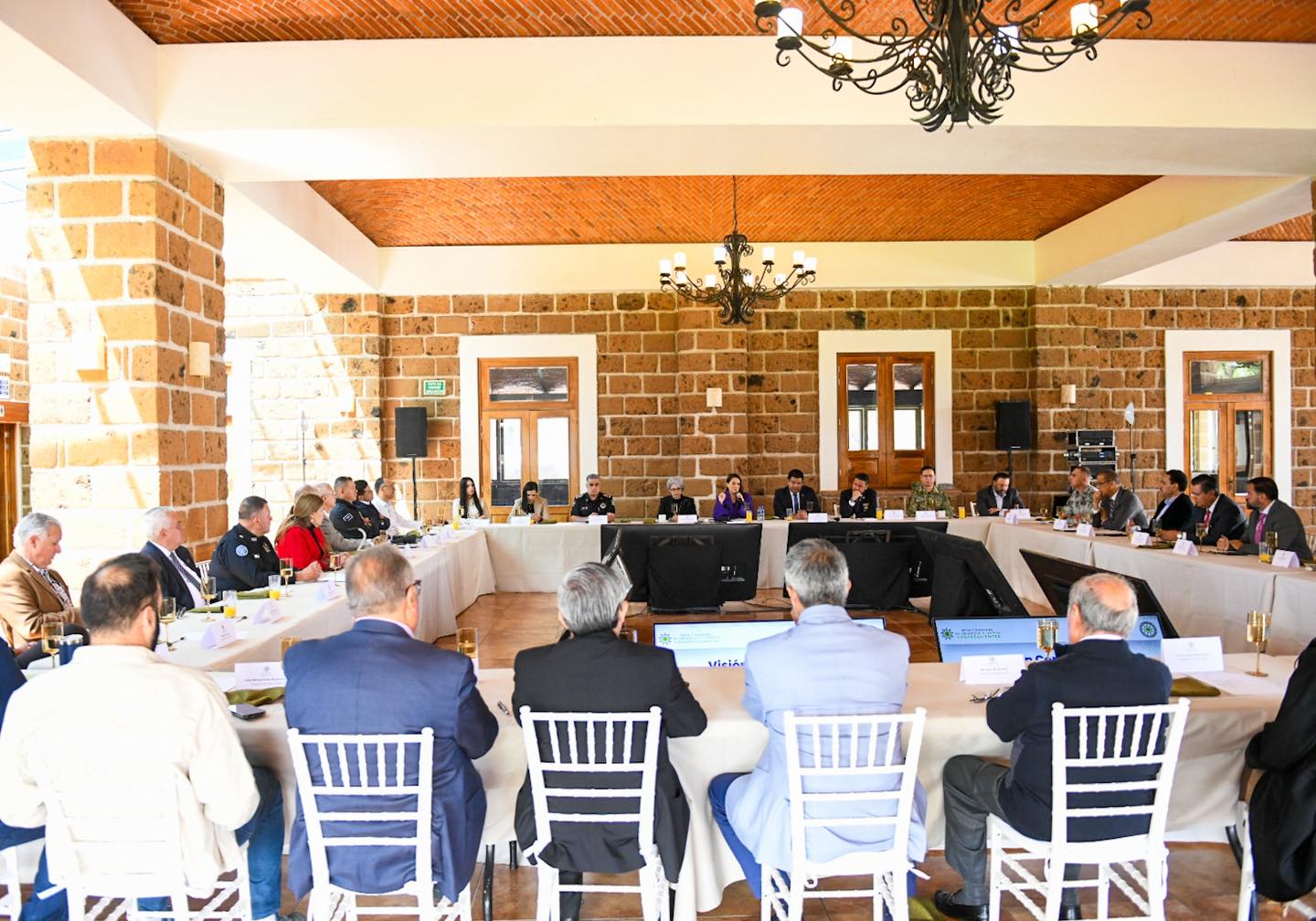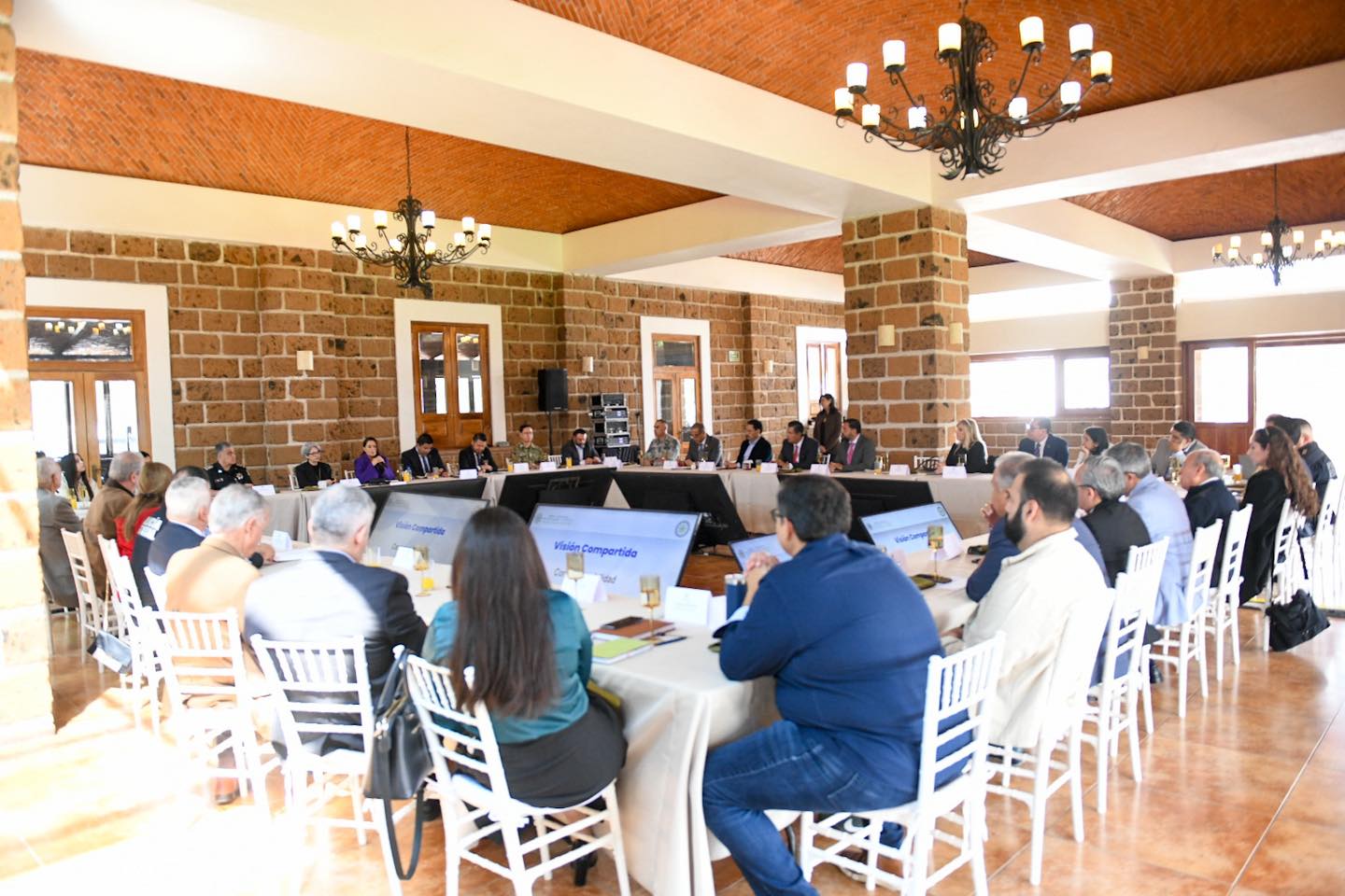 Aguascalientes, Ags.- La gobernadora Tere Jiménez encabezó esta mañana una reunión con las y los integrantes de la Mesa Ciudadana de Seguridad y Justicia, en la que se analizaron estrategias, resultados y avances del plan estratégico Blindaje Aguascalientes.
