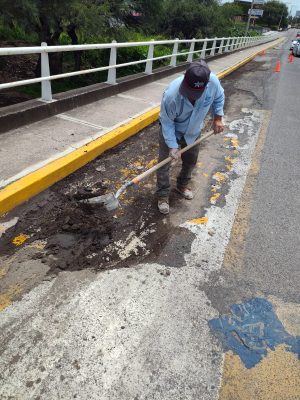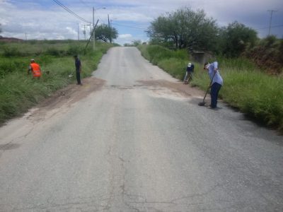 Jalpa, Zacatecas.- En atención a las recientes lluvias registradas en la región, personal del Departamento de Obras Públicas del municipio de Jalpa lleva a cabo trabajos de limpieza en diversos puntos de la cabecera municipal, así como en colonias, barrios y en el Acceso Norte del municipio.