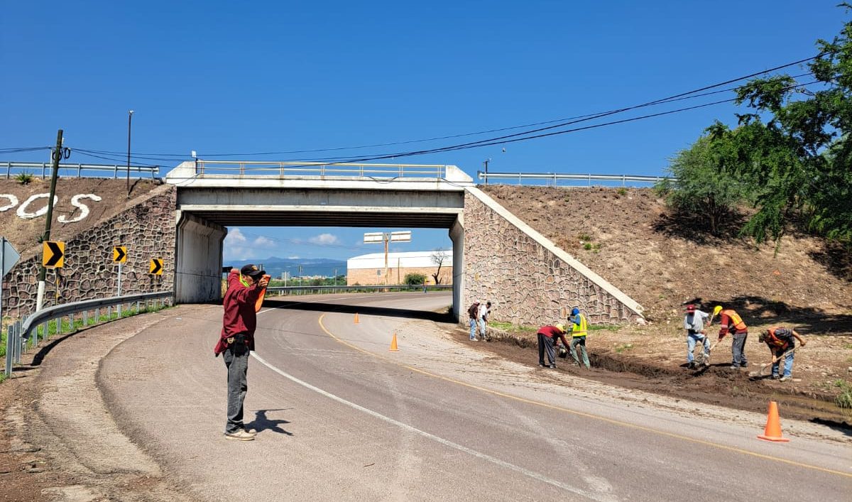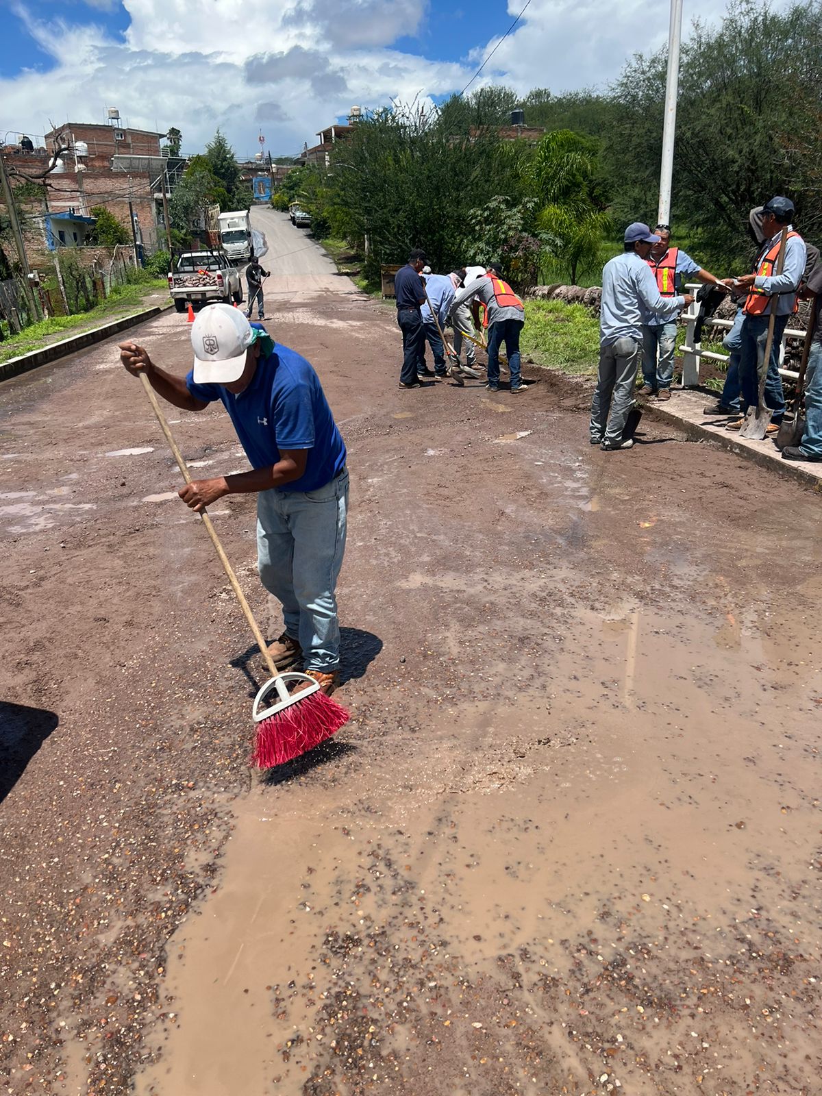 Jalpa, Zacatecas.- En atención a las recientes lluvias registradas en la región, personal del Departamento de Obras Públicas del municipio de Jalpa lleva a cabo trabajos de limpieza en diversos puntos de la cabecera municipal, así como en colonias, barrios y en el Acceso Norte del municipio.