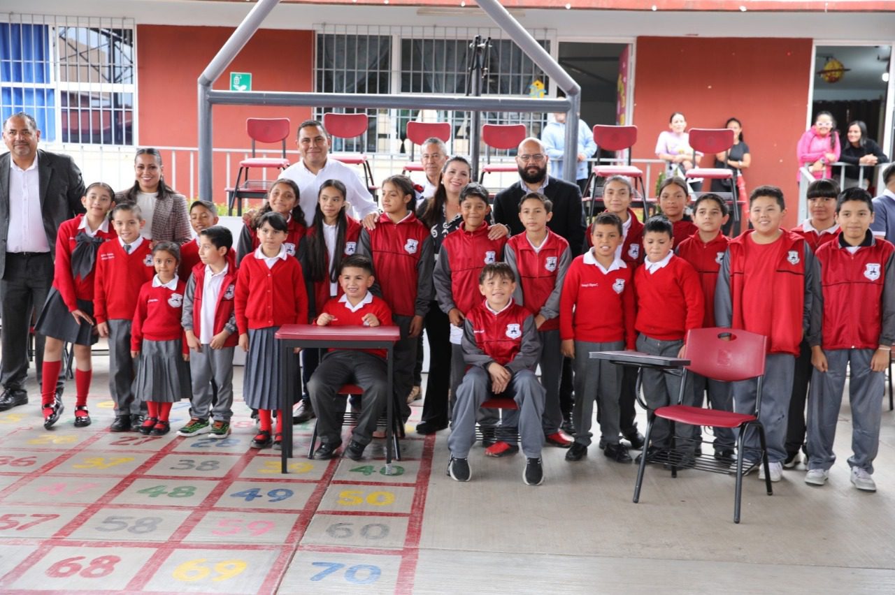 La acción se enmarca dentro del Programa de Dignificación del Escuelas para el Bienestar, misma que consta de mesas individuales, sillas con parrilla para mesa, sillas de paleta y pintarrones, en beneficio de 418 niñas y niños.