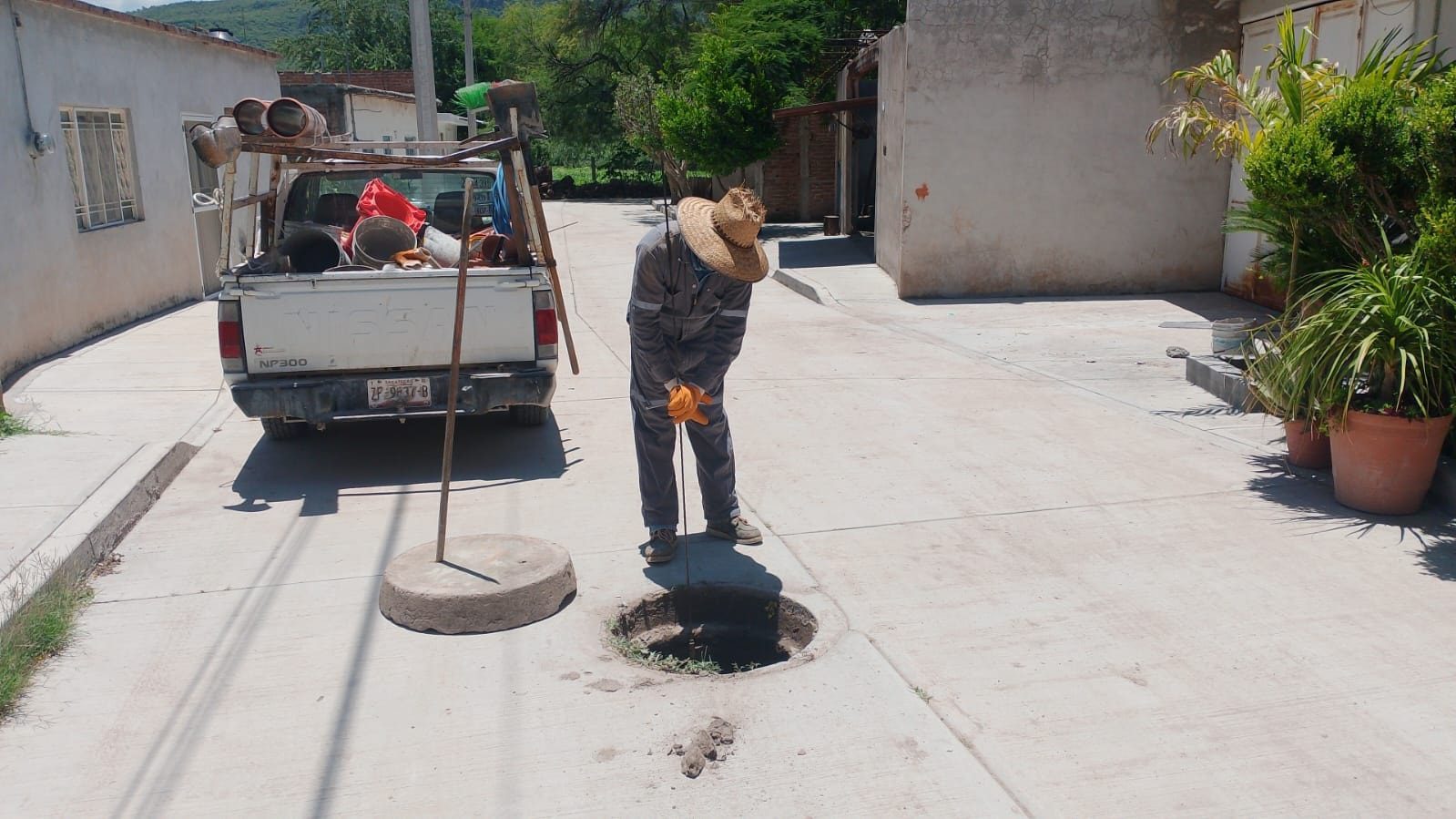 Jalpa, Zacatecas.- El Sistema de Agua Potable de Jalpa llevó a cabo el destape de la línea principal de drenaje en la calle Corregidora de la comunidad de La Mezquitera, luego de que se detectara una saturación provocada por desechos como plásticos, trapos y raíces de árboles.