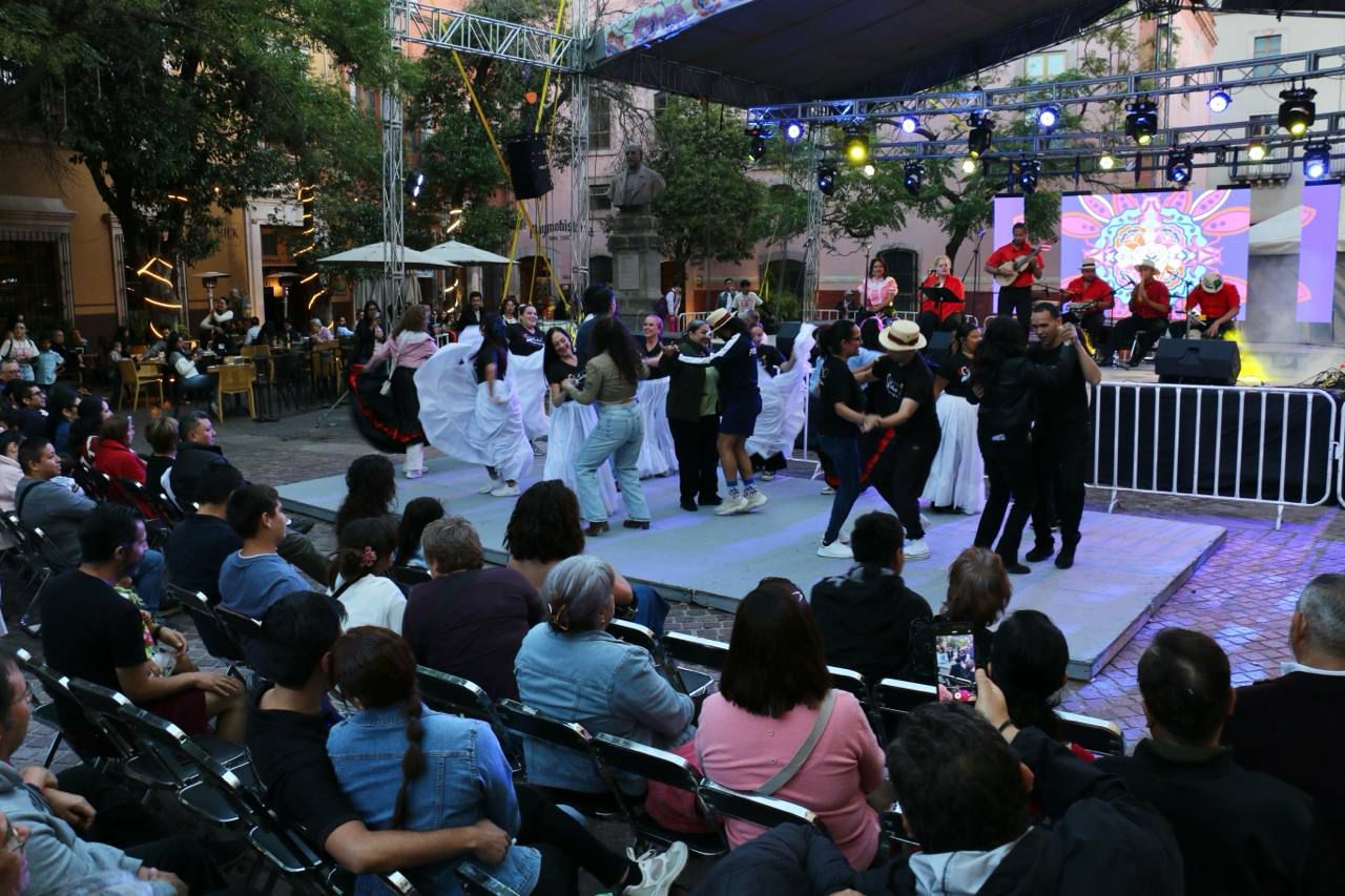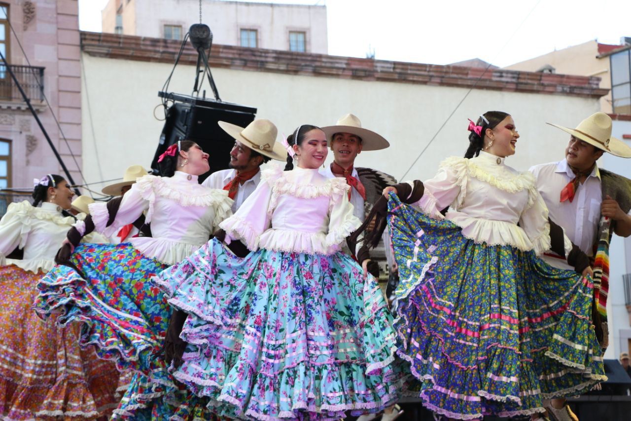 La Plaza de Armas también fue escenario de destacadas presentaciones con sello local e internacional, como la del Ensamble Folclórico de Zacatecas “Tezcatl-Tlalli”, la Compañía de Danza Folclórica Zacatecas, y la agrupación catalana “Esbart Marboleny”, que compartieron con el público un mosaico de estilos, técnicas y tradiciones, en una muestra clara del poder del folclor como puente cultural.