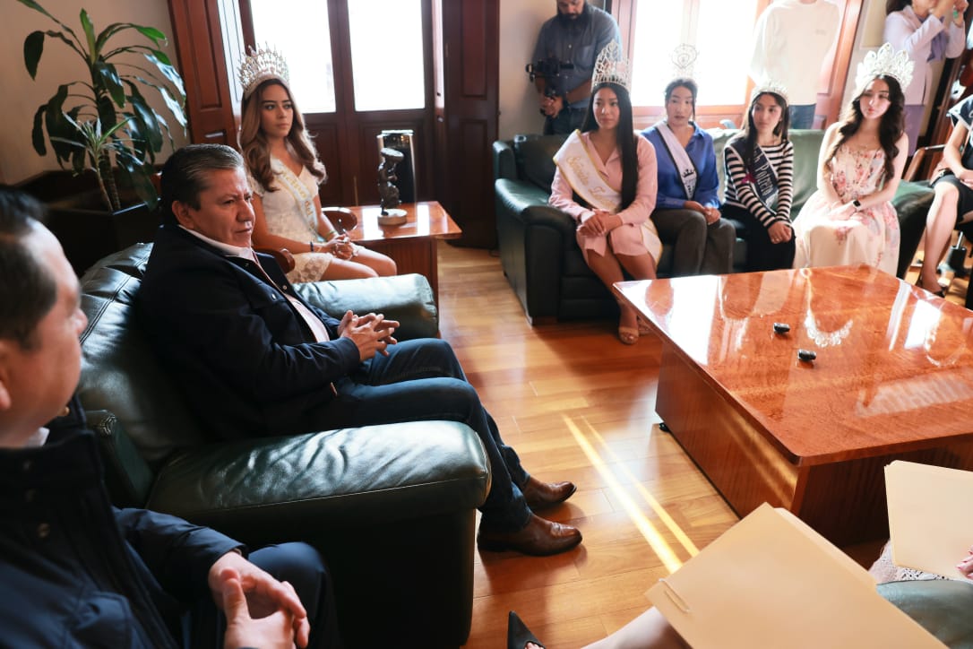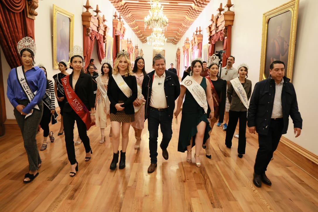 Zacatecas, Zac .- El Gobernador David Monreal Ávila recibió en Palacio de Gobierno a las jóvenes representantes de la belleza zacatecana que participan en el programa “Jóvenes Acercándose a su Cultura” 2025”, con quienes convivió y reconoció su esfuerzo por salir adelante en sus estudios y trabajo, al lado de sus familias, más allá de las fronteras del estado.