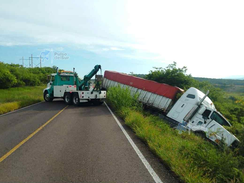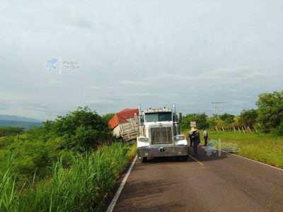 Jalpa, Zacatecas. — La mañana de este viernes, un tractocamión sufrió una volcadura sobre la carretera federal 54, en el tramo Jalpa–Apozol, a la altura del entorno conocido como “La Jabonera”. El accidente provocó la interrupción parcial de la circulación en ambos sentidos por varios minutos, generando largas filas de vehículos y afectaciones al tránsito regional.