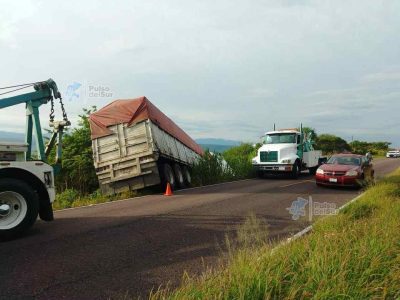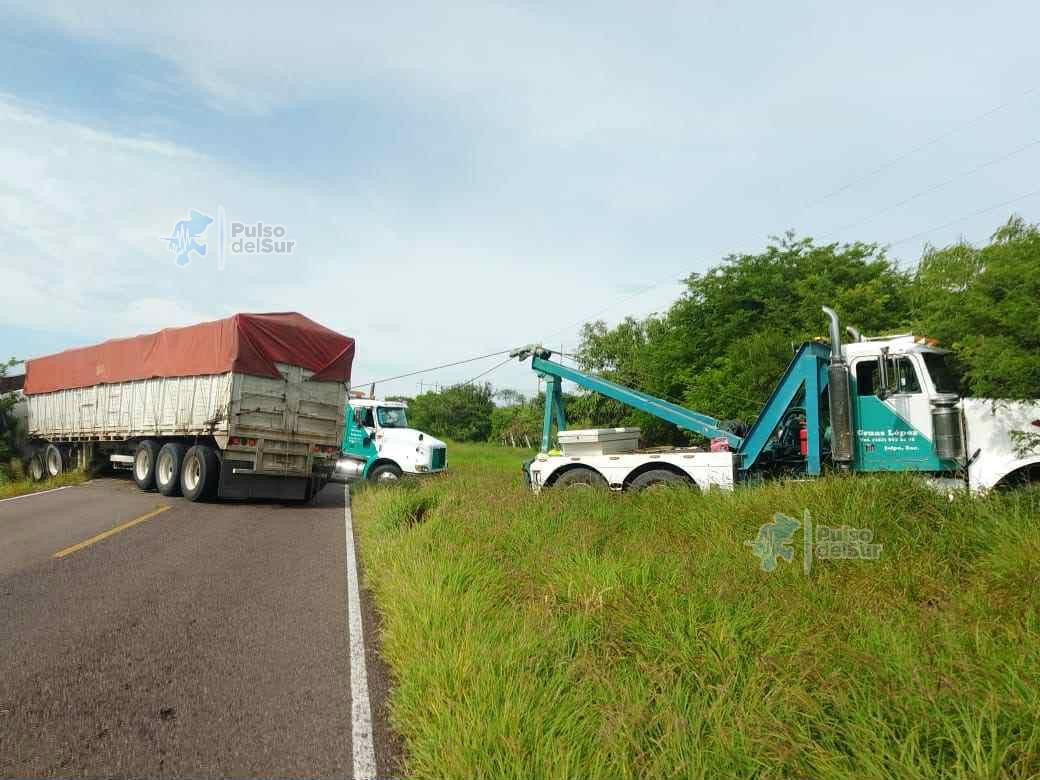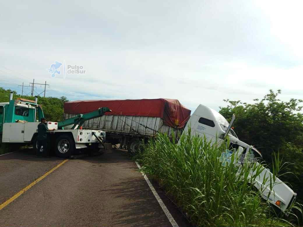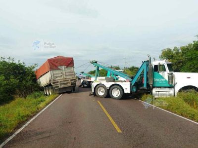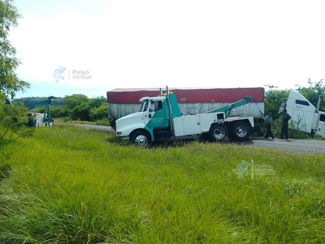 Volcadura de tractocamión interrumpe tránsito en la Federal 54; maniobras de grúa restablecen la circulación