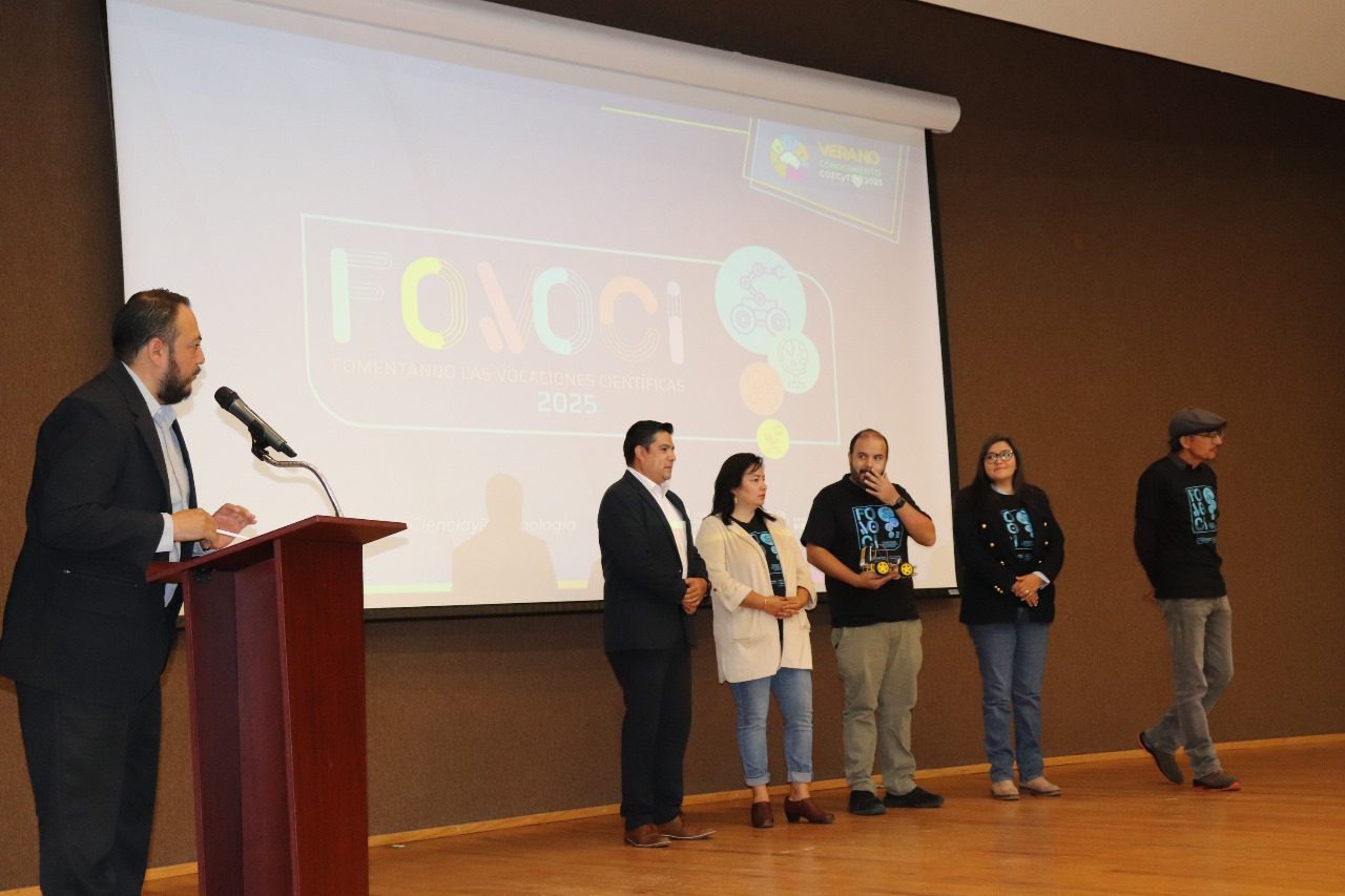 Nuevamente, en el marco del Verano del Conocimiento 2025, el auditorio Marie Curie, del Cozcyt, se llenó de jóvenes, esta vez, estudiantes de secundaria a quienes va dirigido Fovoci, docentes, investigadores, madres y padres de familia, quienes conocieron sobre los procesos de la industria alimenticia, de voz de un experto.