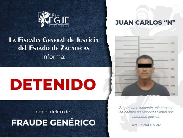 -Juan Carlos “N”, capturado en coordinación con la Fiscalía General del Estado de Jalisco, por el delito de fraude genérico.