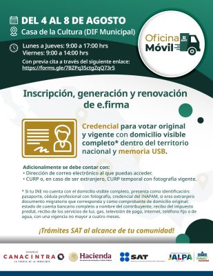 Las atenciones se brindarán del lunes 4 al viernes 8 de agosto, en un horario de 9:00 de la mañana a 5:00 de la tarde. Las autoridades exhortaron a la ciudadanía de Jalpa y comunidades cercanas a aprovechar esta oportunidad y, en su caso, coordinarse con la Dirección de Desarrollo Económico para asegurar su espacio de atención.