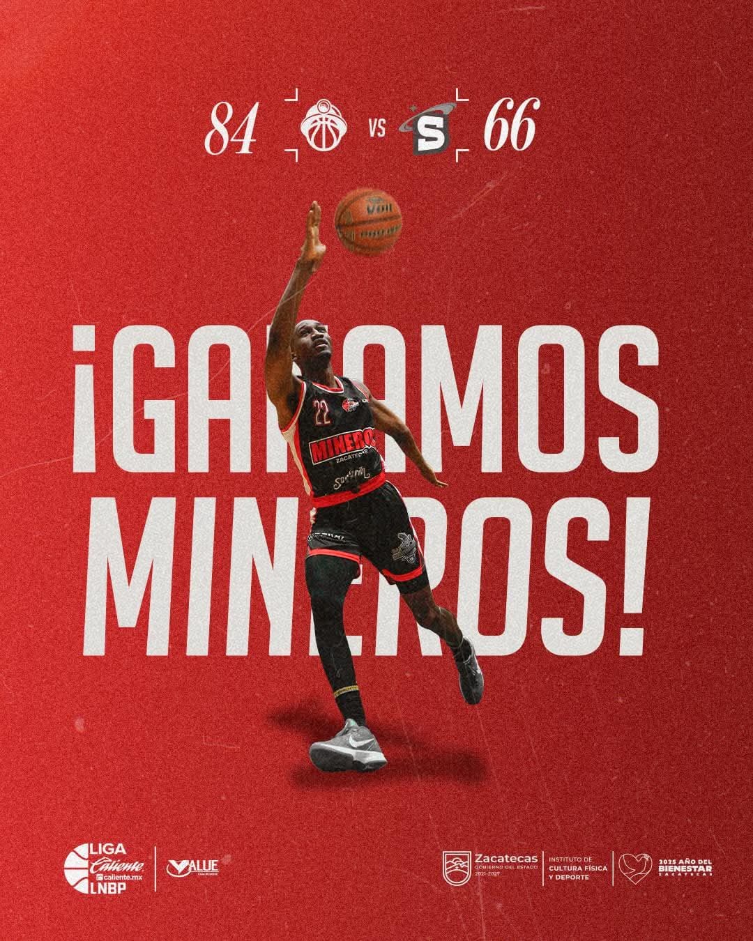 Con una destacada actuación de todos los jugadores y con el aliento de la mejor afición del país, los Mineros de Zacatecas barrieron la serie ante Santos del Potosí, al ganar 84-66 el duelo de la fecha 12 de la Temporada 2025 de la Liga Caliente LNBP.