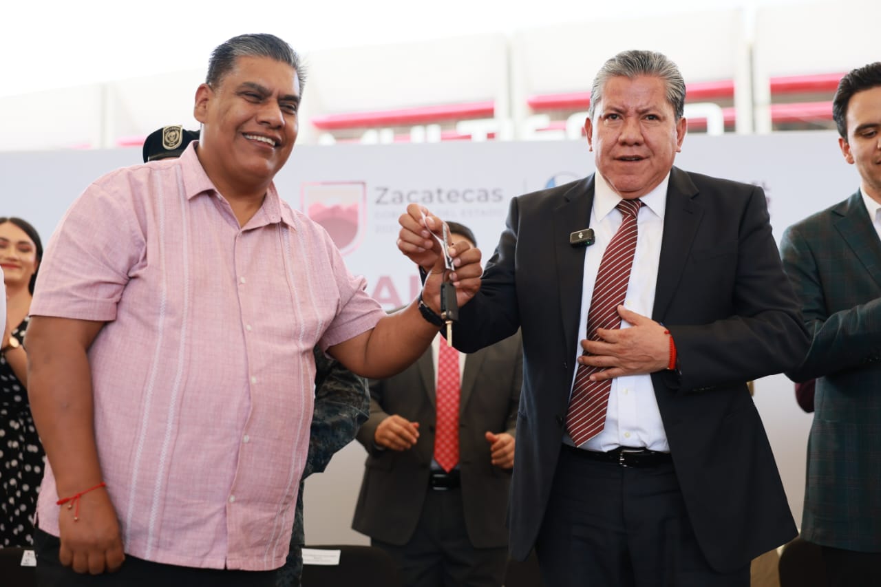 Zacatecas, Zac.- Con el objetivo de fortalecer las capacidades operativas de los municipios y mejorar la prestación de servicios públicos en beneficio de la ciudadanía, el Gobernador David Monreal Ávila concretó la entrega de 26 unidades vehiculares a cinco municipios, mediante el convenio de Fortalecimiento Institucional bajo el esquema peso a peso.