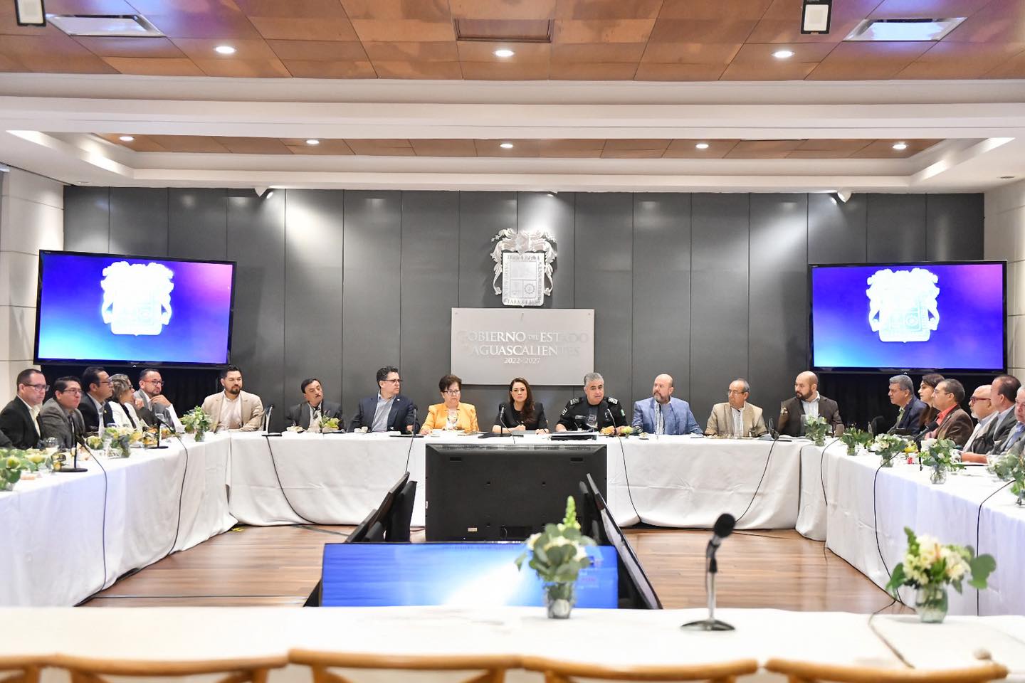 Aguascalientes, Ags.– Con el objetivo de fortalecer la vigilancia y protección en zonas comerciales, la gobernadora Tere Jiménez encabezó una reunión de trabajo con la Secretaría de Seguridad Pública del Estado y representantes de la Cámara Nacional de Comercio, Servicios y Turismo (CANACO).